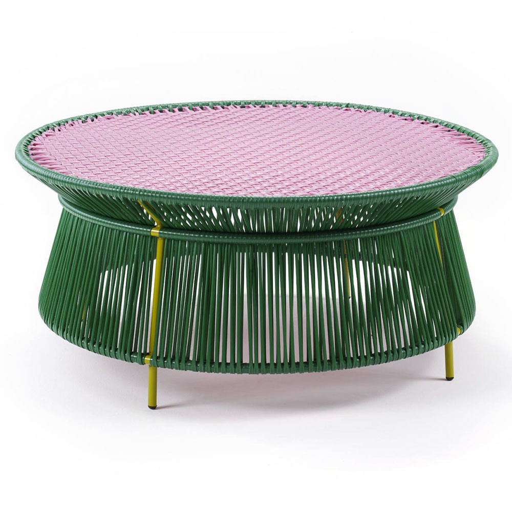 Mesa de centro Caribe verde, rosa y curry