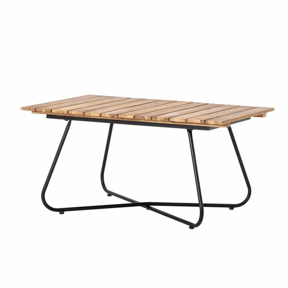 Elige la mesa de centro Hampton de Bloomingville, perfecta para el verano. Su tablero es de madera de acacia, mientras que las patas son de metal negro. Se recomienda colocar la mesa en una zona cubierta y guardarla en el interior fuera de temporada.