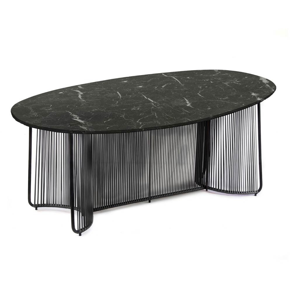 - Estructura: acero con recubrimiento de polvo | Cuerdas: Plástico reciclado PVC | Tapa: mármol