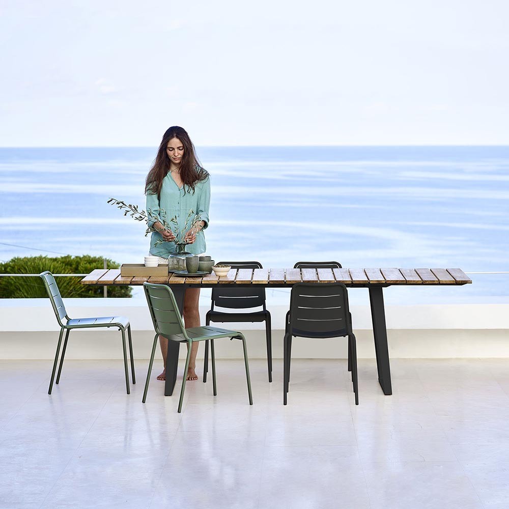 Cane-line es una marca de diseño danesa que nos ofrece muebles tanto de exterior como de interior. Con el fin de ofrecerle la mejor calidad de vida tanto en exteriores como en interiores, Cane-line destaca la calidad de los materiales utilizados y la comodidad de sus muebles. Cane-line diseñó esta mesa de comedor de teca y aluminio, ideal para exteriores. Copenhague acompañará sus tardes, aperitivos y comidas. Esta mesa es duradera, práctica y elegante.