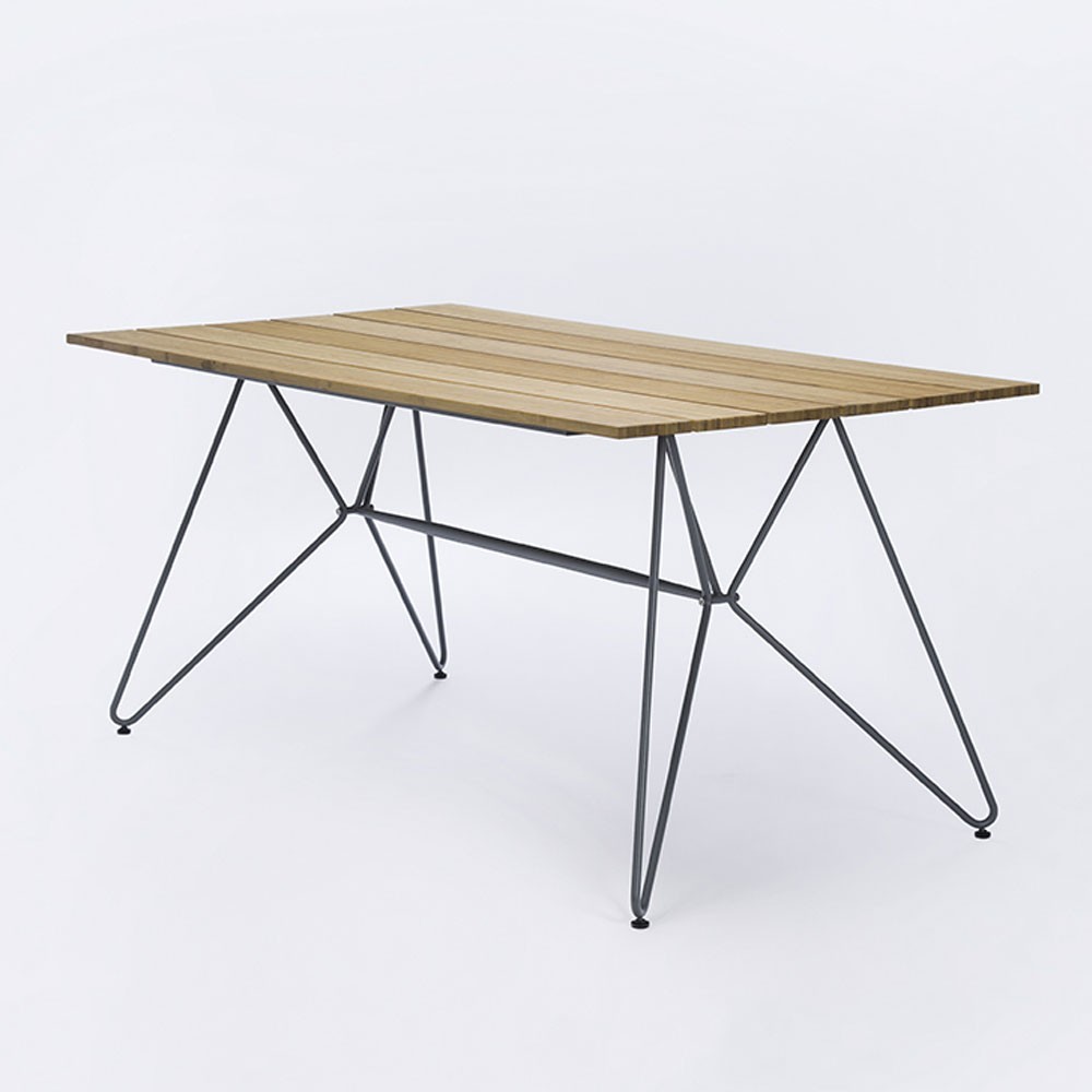 Mesa de exterior Sketch con listones de bambú de Houe. Las hermosas patas de metal esculpidas le dan a la mesa Sketch un aspecto minimalista y aireado. La construcción de las patas hace que la mesa sea completamente estable. La tapa de bambú está preengrasada. La mesa Sketch se caracteriza por su magnífica base arquitectónica de metal, que aportará originalidad y un espíritu minimalista a tu espacio vital.