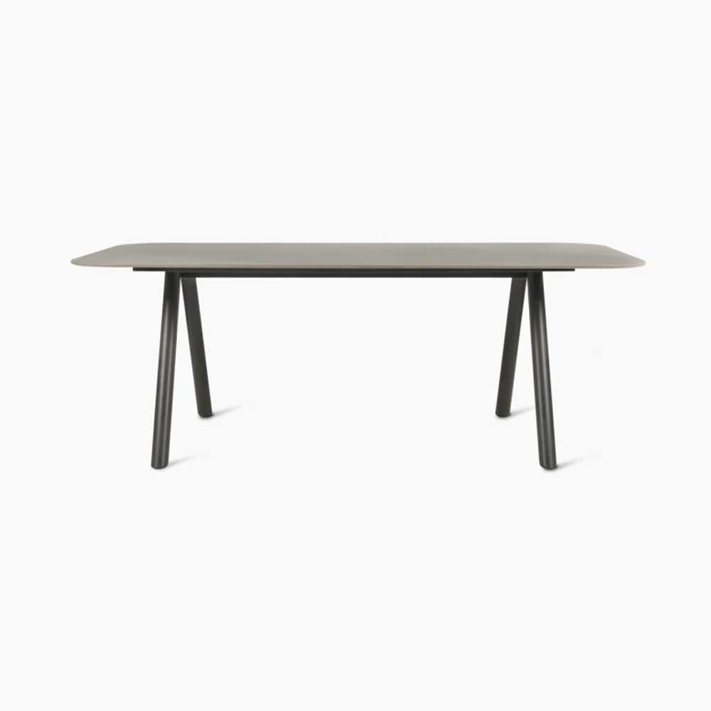 La mesa de terraza Kodo realzará su espacio exterior. Su tapa de cerámica de aspecto natural se combina con esbeltas patas de aluminio para un diseño refinado y contemporáneo.