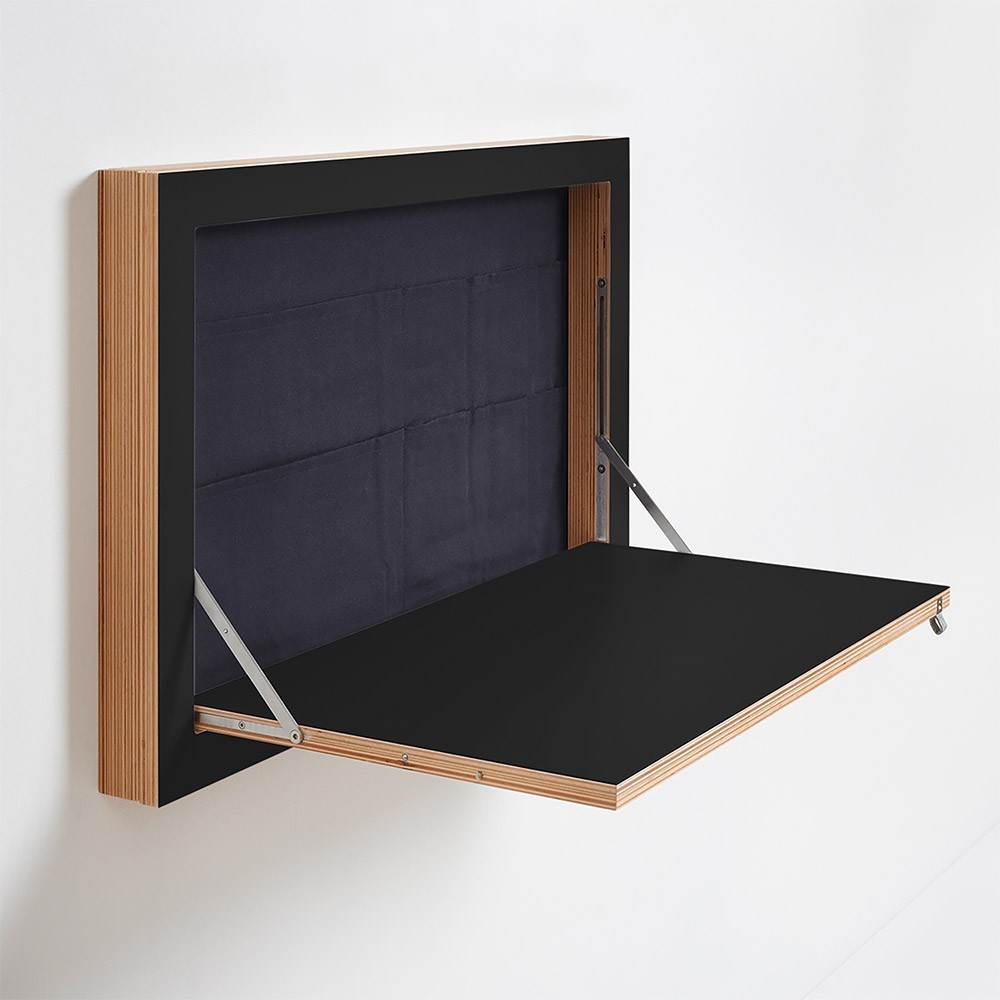 ¡Funcional y discreto, el escritorio de pared plegable negro fläpps con almacenamiento es ideal para espacios pequeños! Se adapta a tus deseos y necesidades: puesto de trabajo sentado o de pie según la altura a la que lo fijes a la pared. Almacene bolígrafos, revistas, cables y dispositivos electrónicos, para que tenga todo a mano y listo para usar.