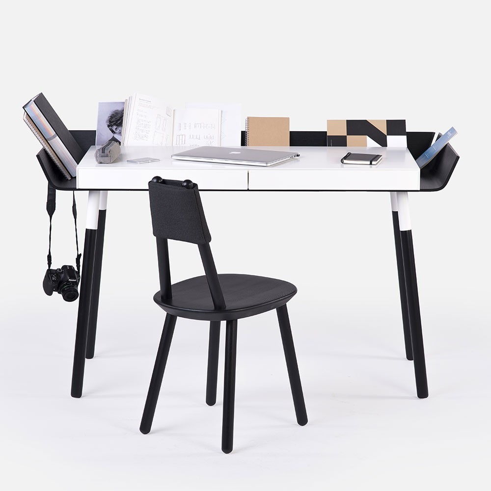 El escritorio My Writing L negro, diseñado por EMKO, revela espacios de almacenamiento inteligentes. Sus cajones escondidos bajo su tablero de MDF y su 'canaleta' de almacenamiento en el lateral del escritorio lo convierten en una pieza imprescindible.