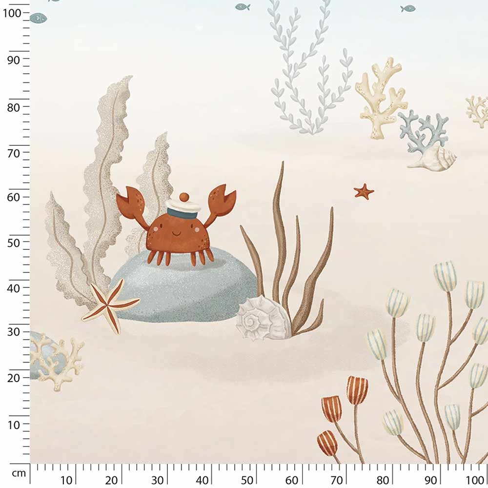 Descubra el papel pintado panorámico "Ballenas", que transforma el dormitorio de su hijo en un encantador santuario marino. Con sus ilustraciones de ballenas, tortugas y peces, esta cautivadora decoración en tonos azules y blancos crea una atmósfera mágica y relajante, ideal para despertar la imaginación y la curiosidad.