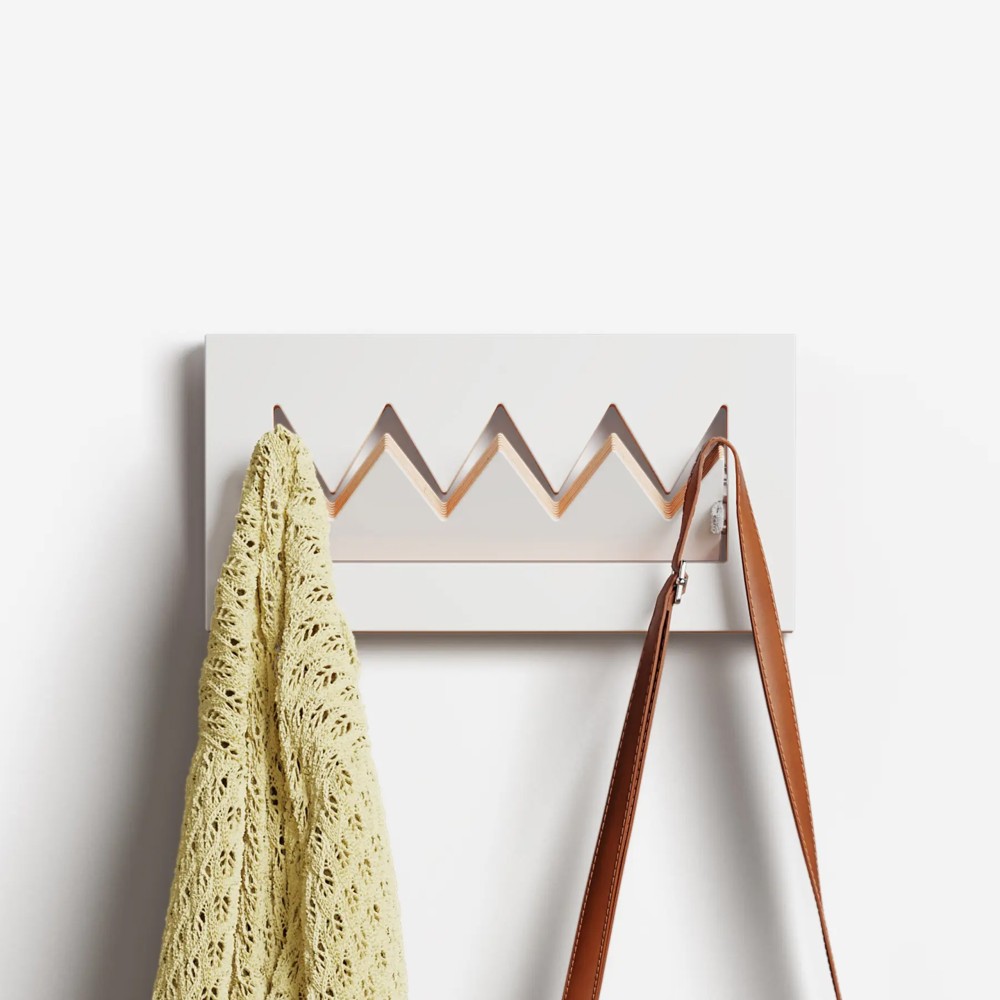 Se coloca majestuosamente en el recibidor y convierte el armario en un objeto. Las púas de la corona se pliegan para servir de perchero para la chaqueta, la bufanda, el sombrero y, para quien lo tenga, la corona.