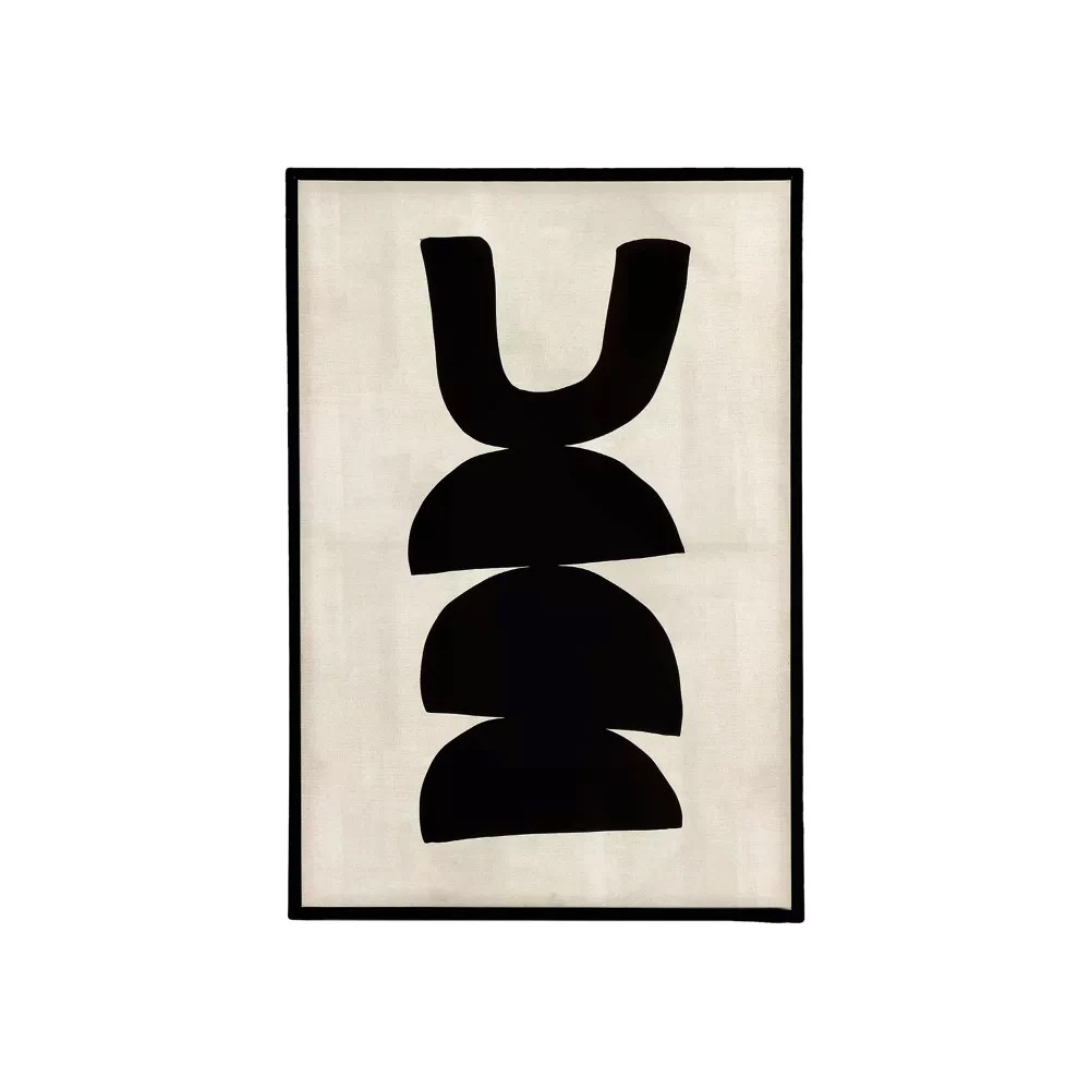 Descubra el lienzo Equilibro de Pomax con motivo abstracto. Su marco negro y sus formas orgánicas en negro y beige aportarán un toque chic y original a tu pared.