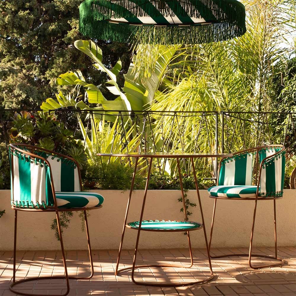 Con su tejido a rayas para exteriores, con rayas ladrillo/marrón para un toque terroso o blanco/verde para un aire fresco y primaveral, la silla Palmer invita a replantearse el diseño de sus espacios interiores y exteriores.