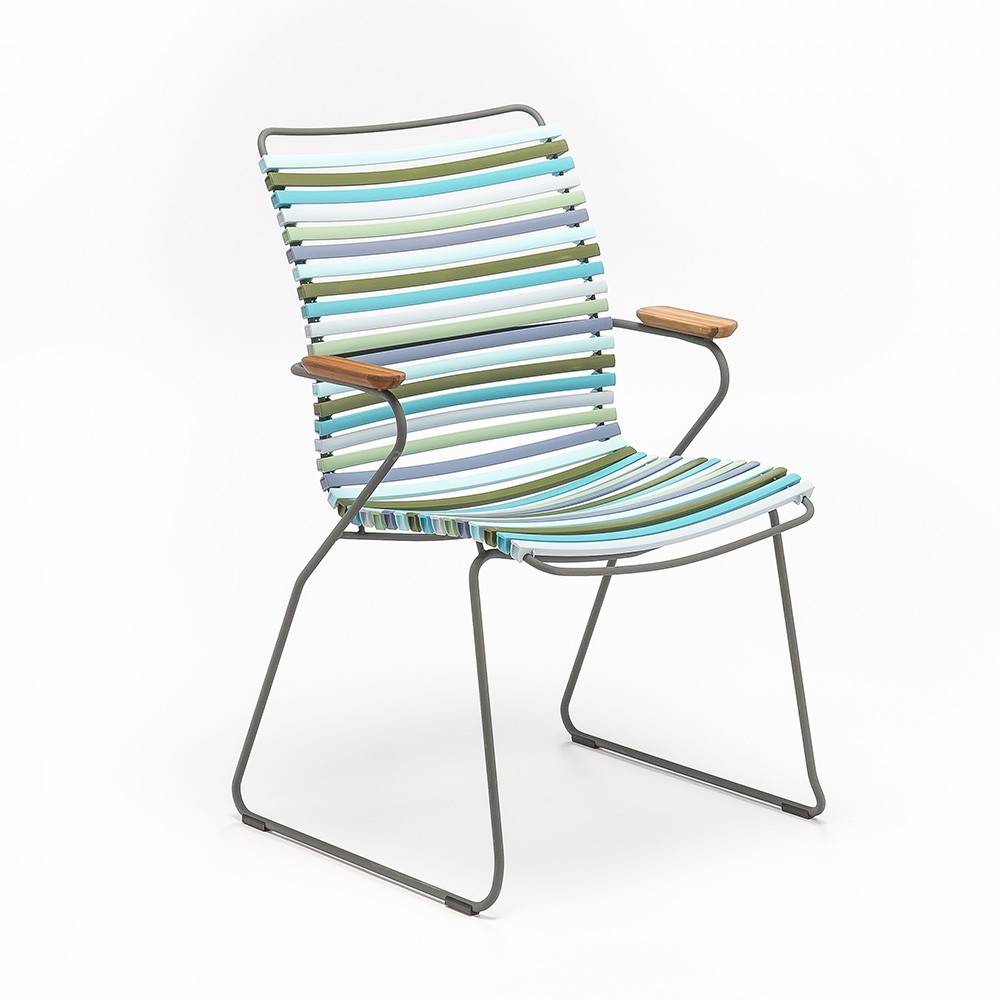 Esta bonita silla Click de respaldo alto, diseñada por Henrik Pedersen para Houe, es un producto perfecto para decorar tu jardín de la manera más hermosa. Con su estructura de metal gris con recubrimiento de polvo, sus grandes listones de plástico multicolores enganchados en la parte superior y sus apoyabrazos de bambú, esta silla es ligera y elegante. Con su respaldo alto, podrás sentarte cómodamente en esta silla con la certeza de poder pasar un buen rato. Ideal para su exterior, esta silla Click encontrará fácilmente su lugar gracias a su aspecto elegante y moderno.