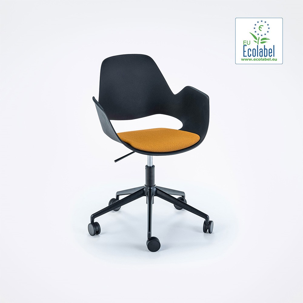 ¡Esta bonita silla Falk, de Thomas Pedersen para Houe, es un producto eco-responsable perfecto para tu interior! De hecho, este asiento está hecho de plástico reciclado posconsumo directamente extraído de la basura doméstica y tejido de poliéster reciclado posconsumo, también cuenta con la etiqueta ecológica de la UE. Compuesto por una base giratoria ligera de cinco patas con ruedas, un asiento exterior que sigue las curvas de su cuerpo y un asiento tapizado color mostaza, esta silla es moderna y original. Ideal en casa, en tu oficina personal, o en el trabajo, en tu oficina profesional, la silla Falk se adaptará al uso que desees.