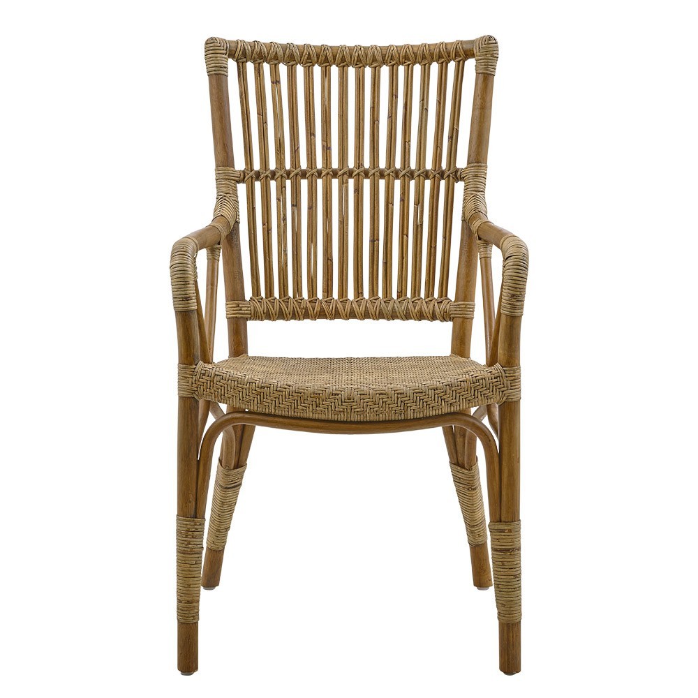 Piano es una silla de comedor elegante y cómoda. Su estructura de ratán natural, tejida y lacada a mano, le confiere un toque moderno y marinero. El sillón Piano está hecho a mano con el gran saber hacer del ratán indonesio, uno de los materiales de mobiliario más duraderos del mundo.
