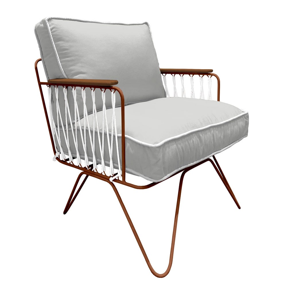 Confortable gracias a su generoso asiento y su gran respaldo suave, sus cuerdas de algodón blanco evocan las de los veleros, mientras que el tejido hidrófugo con ribetes de sus cojines recuerda las tumbonas de la Costa Azul, cuna del espíritu de la Riviera francesa que. él suelta.