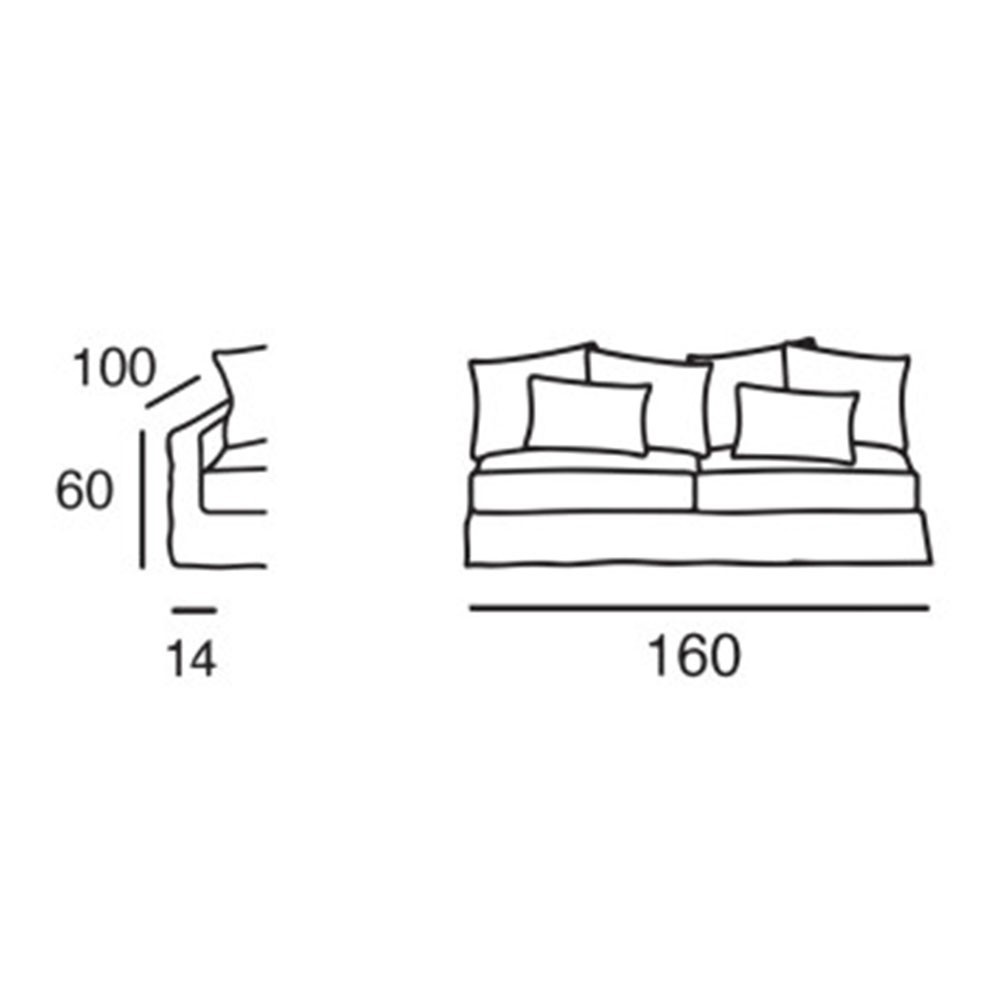 - Anchura: 160 cm | Profundidad: 100 cm | Altura: 83 cm | Profundidad del asiento: 63 cm | Altura del asiento: 42 cm