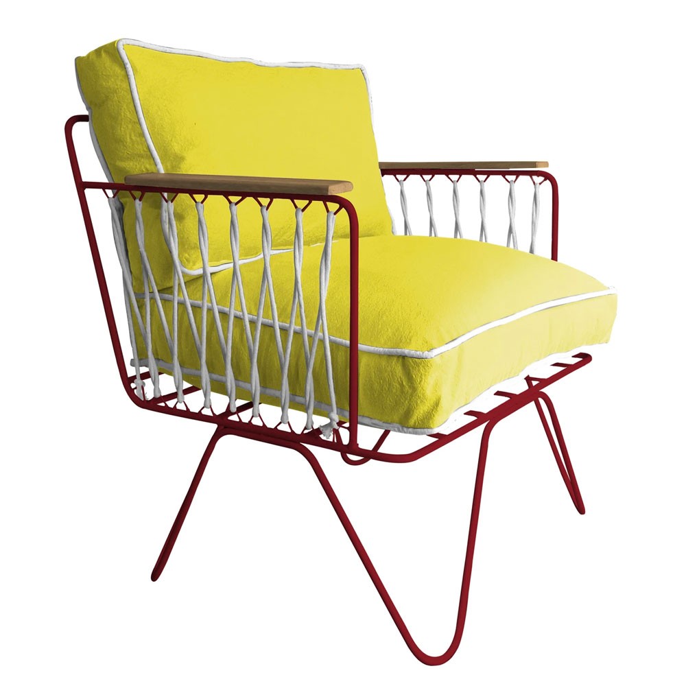 Confortable gracias a su generoso asiento y su gran respaldo suave, sus cuerdas de algodón blanco evocan las de los veleros, mientras que el algodón amarillo de sus cojines recuerda el sol de la Costa Azul, cuna del espíritu de la Riviera francesa que libera.