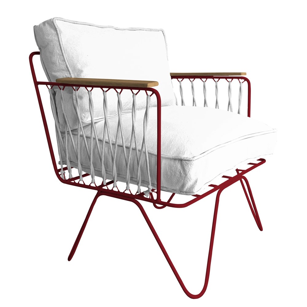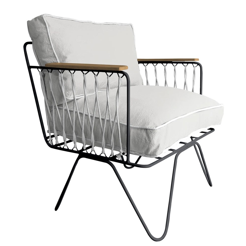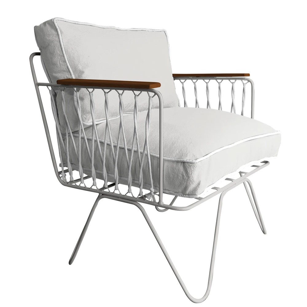 Confortable gracias a su generoso asiento y su gran respaldo suave, sus cuerdas de algodón blanco evocan las de los veleros, mientras que el algodón blanco de sus cojines recuerda las tumbonas de la Costa Azul, cuna del espíritu de la Riviera francesa que libera.