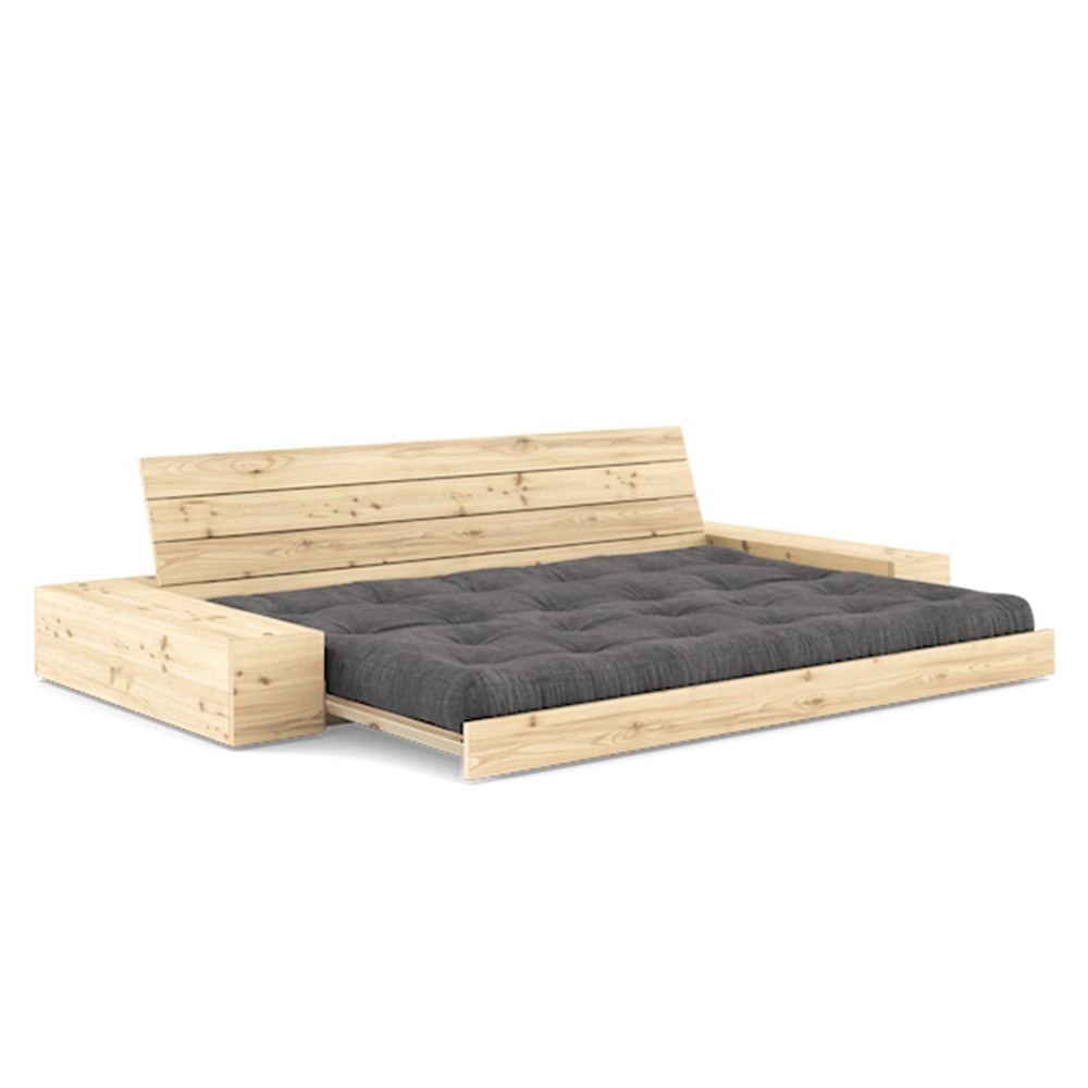 El armazón de la cama, fabricado con pino certificado FSC®, y el grueso colchón de futón acolchado garantizan la comodidad al sentarse y acostarse, combinando funcionalidad con un toque de lujo.