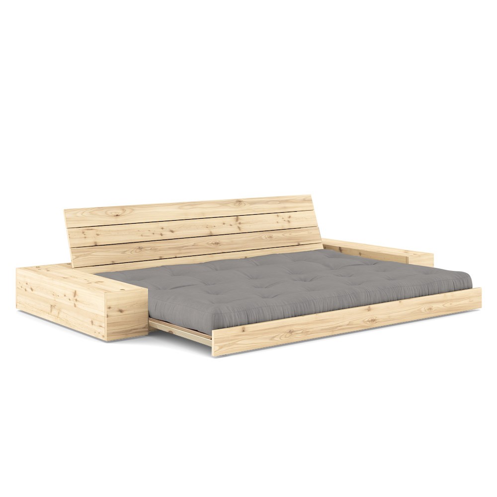 El armazón de la cama, fabricado con pino certificado FSC®, y el grueso colchón de futón acolchado garantizan la comodidad al sentarse y acostarse, combinando funcionalidad con un toque de lujo.