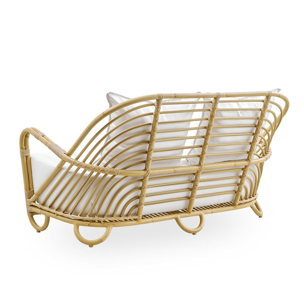 Sofá de 2 plazas Charlottenborg de ratán natural para exteriores de Sika-Design. Moderno y cómodo, aportará un toque bohemio a su salón de exterior.