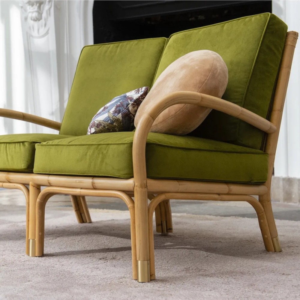 Cada detalle refleja una preocupación por el confort y la calidad: cojines Bultex de alta gama fabricados en Francia, fundas de terciopelo desenfundables, doble canesú en los respaldos, acabados de latón... Un sutil y refinado toque de naturalidad, para un espíritu vintage revisitado con modernidad.