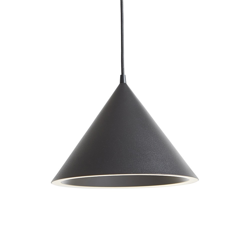 La lámpara colgante Annular, decididamente contemporánea, se crea a partir de dos formas principales: una pantalla cónica y un anillo de luz. Gráfica y original, esta lámpara colgante encajará muy fácilmente en un dormitorio o salón.