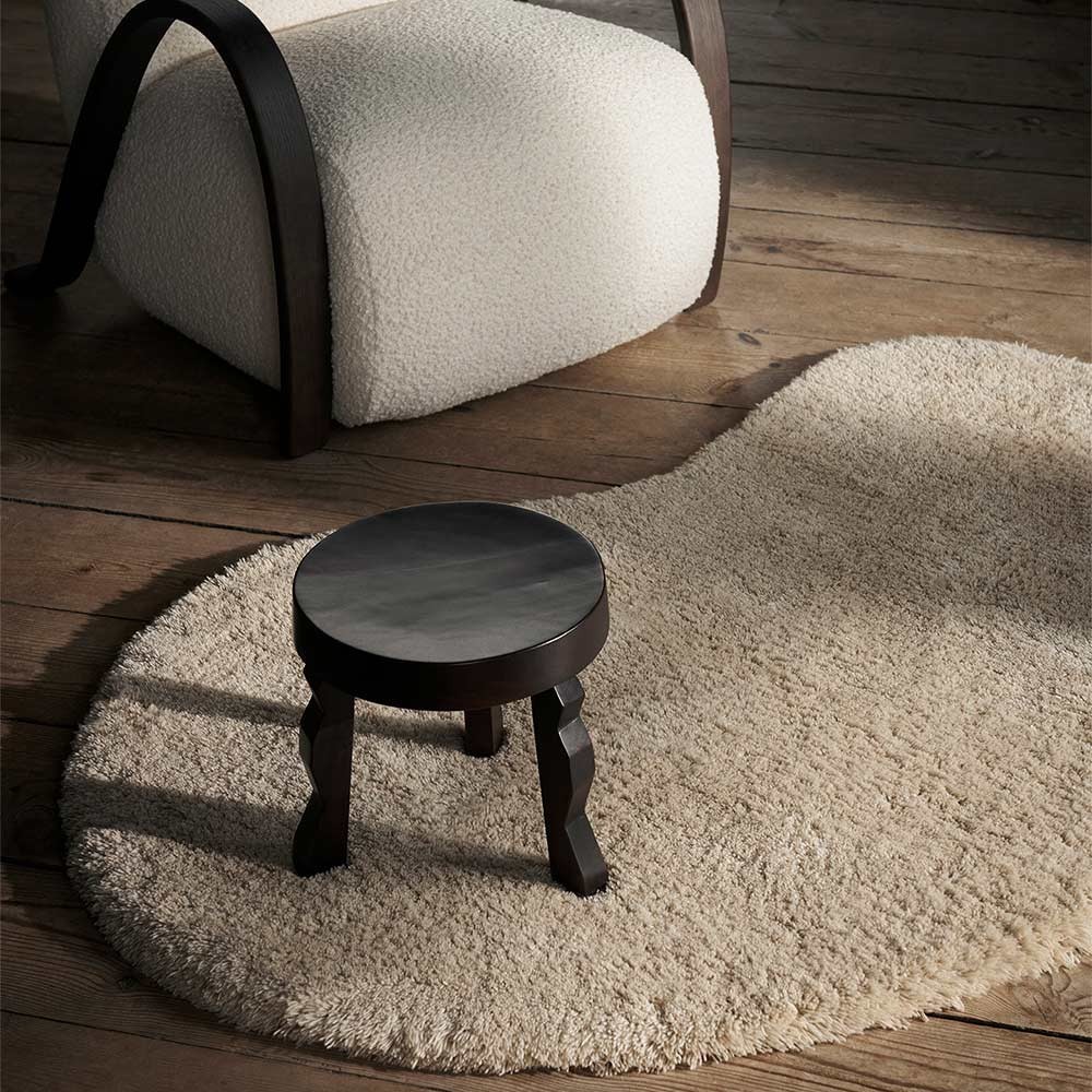 Fabricado en madera de mango con certificación FSC™, el taburete presenta unas esculturales patas onduladas y un robusto asiento redondo.