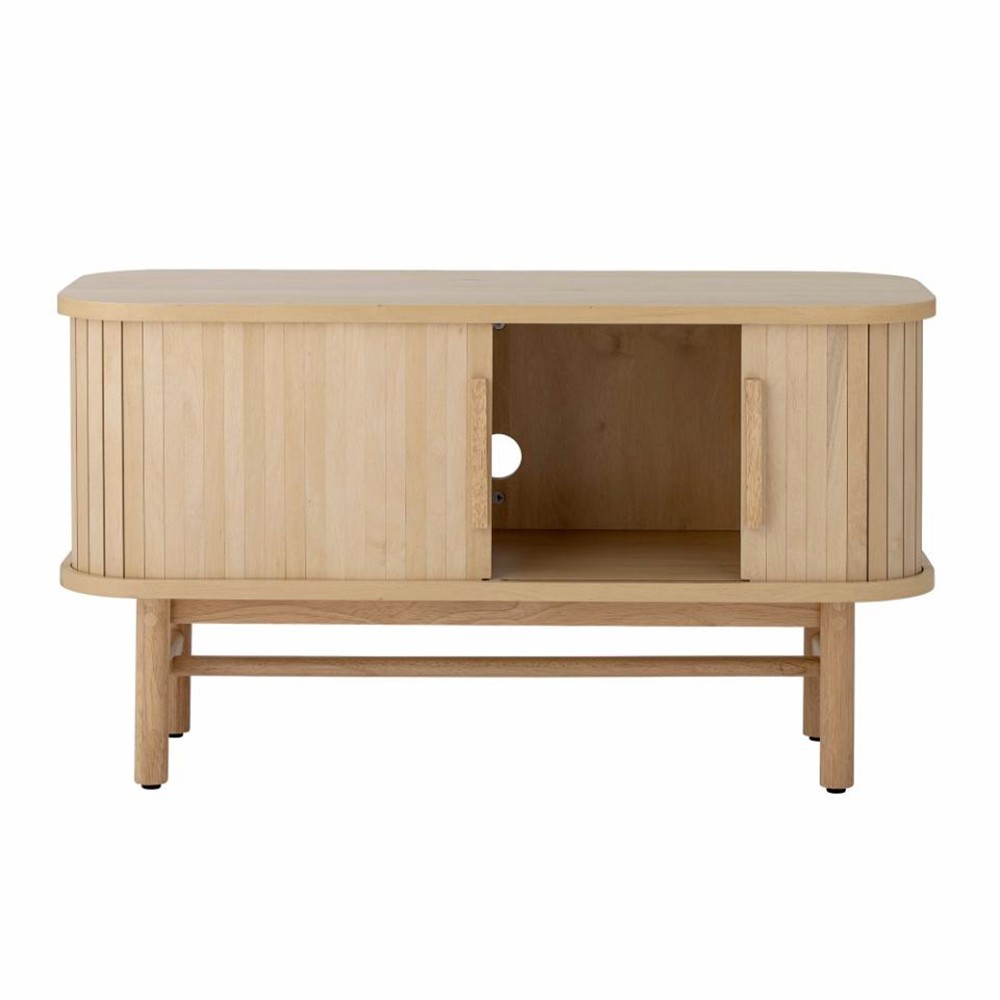 Descubre el armario Lex de Bloomingville, fabricado en madera de caucho clara con elegantes puertas correderas. Perfecto para el almacenamiento en la sala de estar o como mueble de TV.