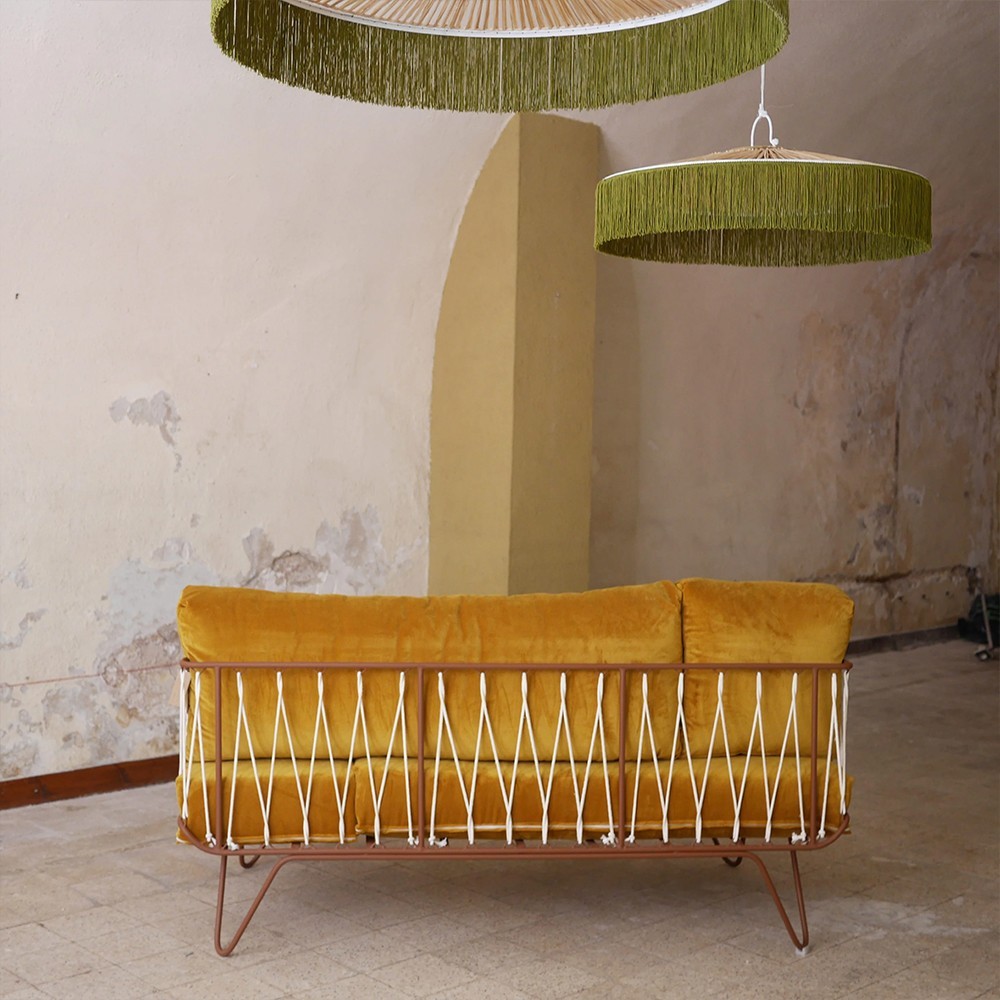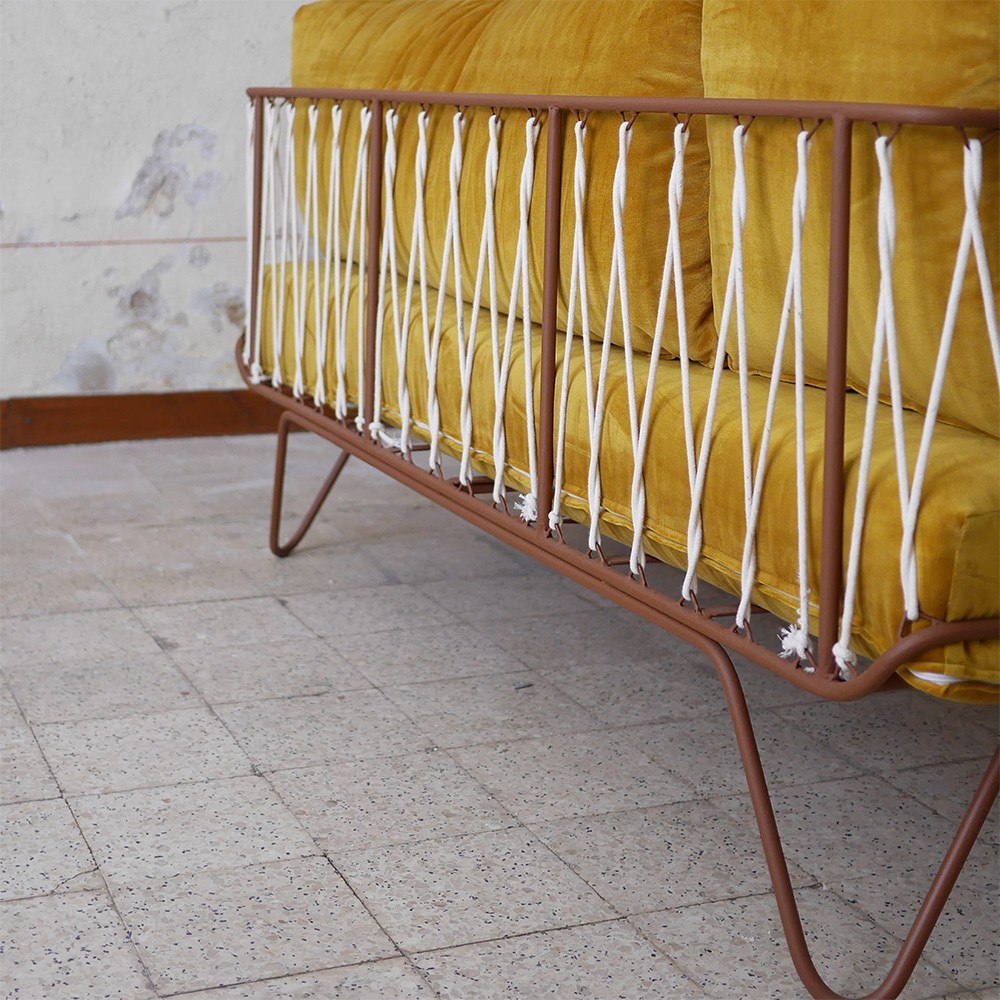 Entièrement confectionné à la main par nos artisans au Maroc, chaque pièce est unique et porte les marques d’un savoir-faire artisanal. Son design autoportant met en valeur le travail du cordage arrière, clin d’œil élégant aux accoudoirs emblématiques de la collection Croisette.