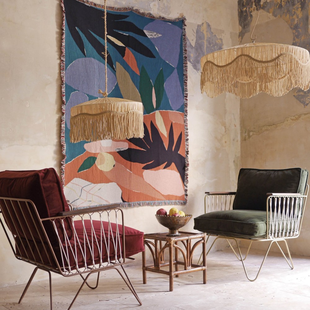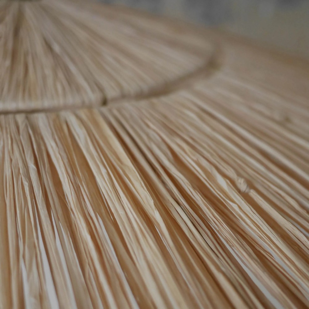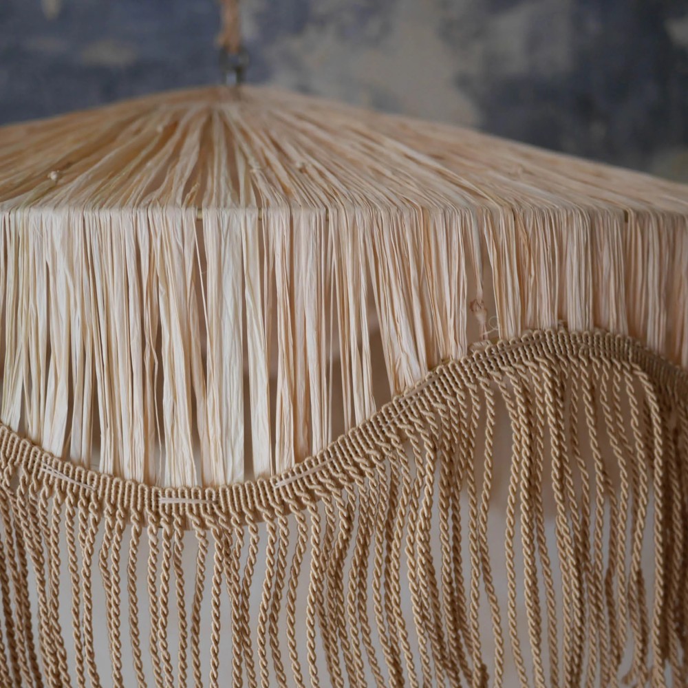 Voici le nouveau venu dans la famille de luminaires Honoré : la suspension Gatsby. Un iconique qui rappelle l'âge d'or des soirées de Gatsby le Magnifique. Les longues franges sont ondulées ce qui donne à ce luminaire une allure originale dans la tendance wavy. Avec son tressage en raphia en forme de parasol et sa structure en fer doré, Gatsby a les arguments pour s'adapter à tous les styles.