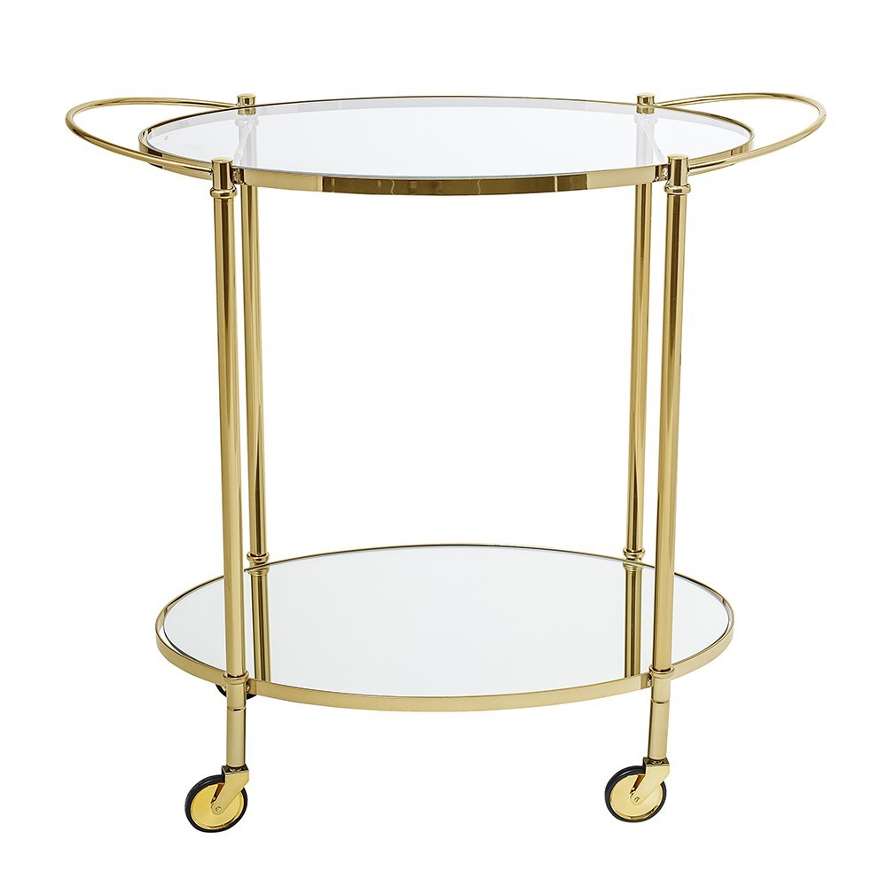 La table de bar Fine crée une atmosphère élégante avec ses lignes raffinées et son aspect doré. Les poignées facilitent son déplacement.