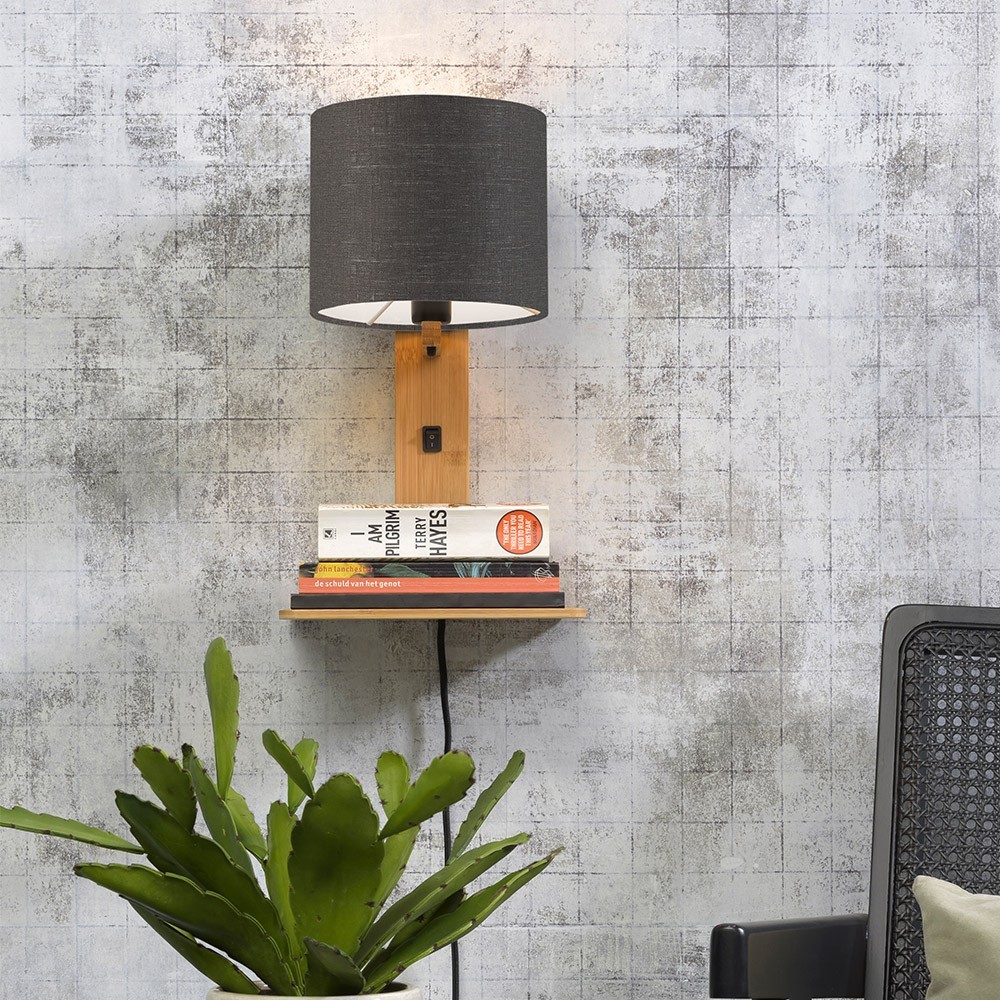 Découvrez ici l'applique murale et étagère Andes naturelle et grise foncée qui a été conçue par la marque Good&Mojo. Cette lampe, qui fait également office d'étagère, est réalisée en bambou et en lin écologique. Au style scandinave et éco-responsable, elle apportera une touche design et originale à votre intérieur. Cette lampe sera parfaite dans une chambre, au-dessus d'un lit pour y ranger vos lectures du soir ou dans un salon, près du canapé.