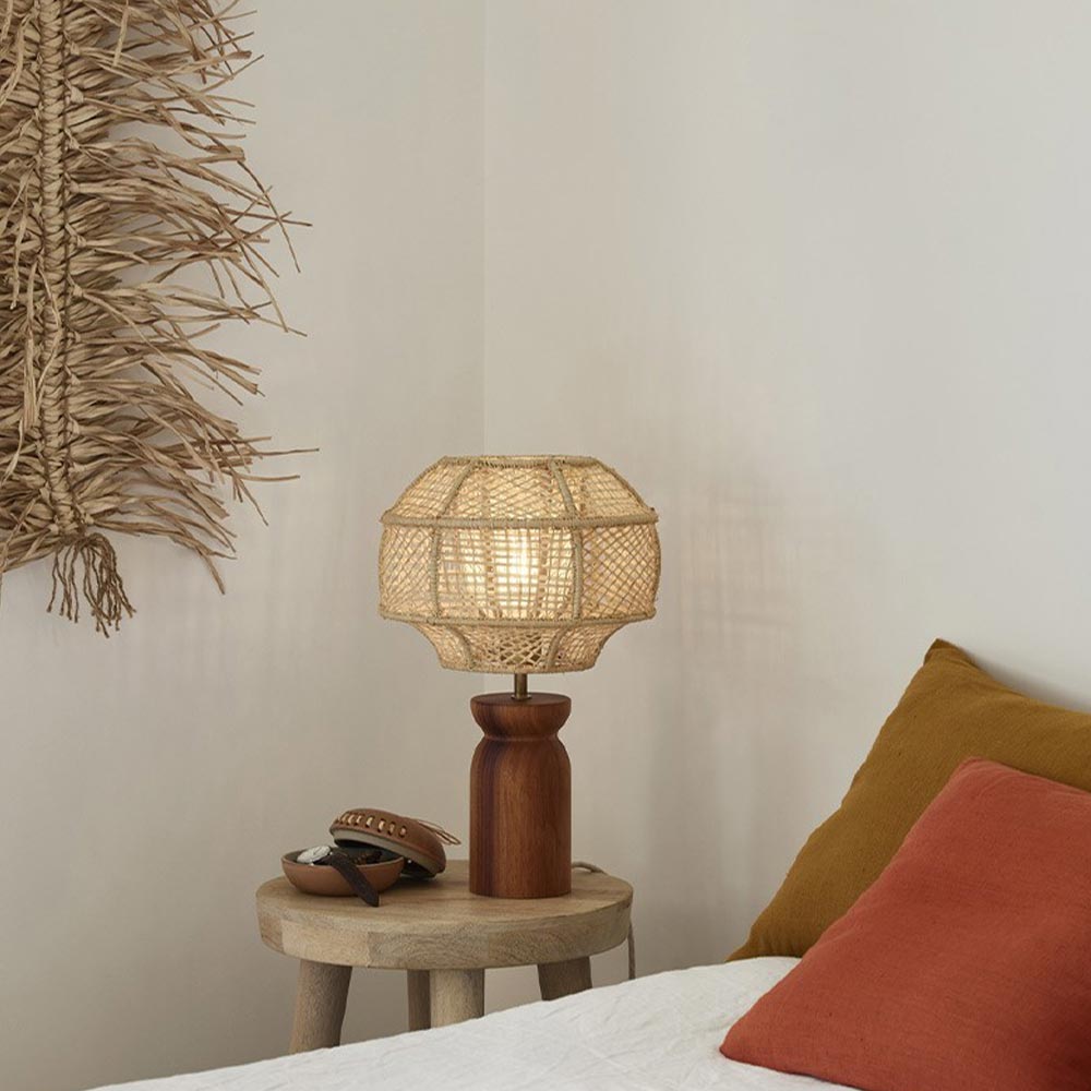 - Une table basse en bois ou en fibres naturelles