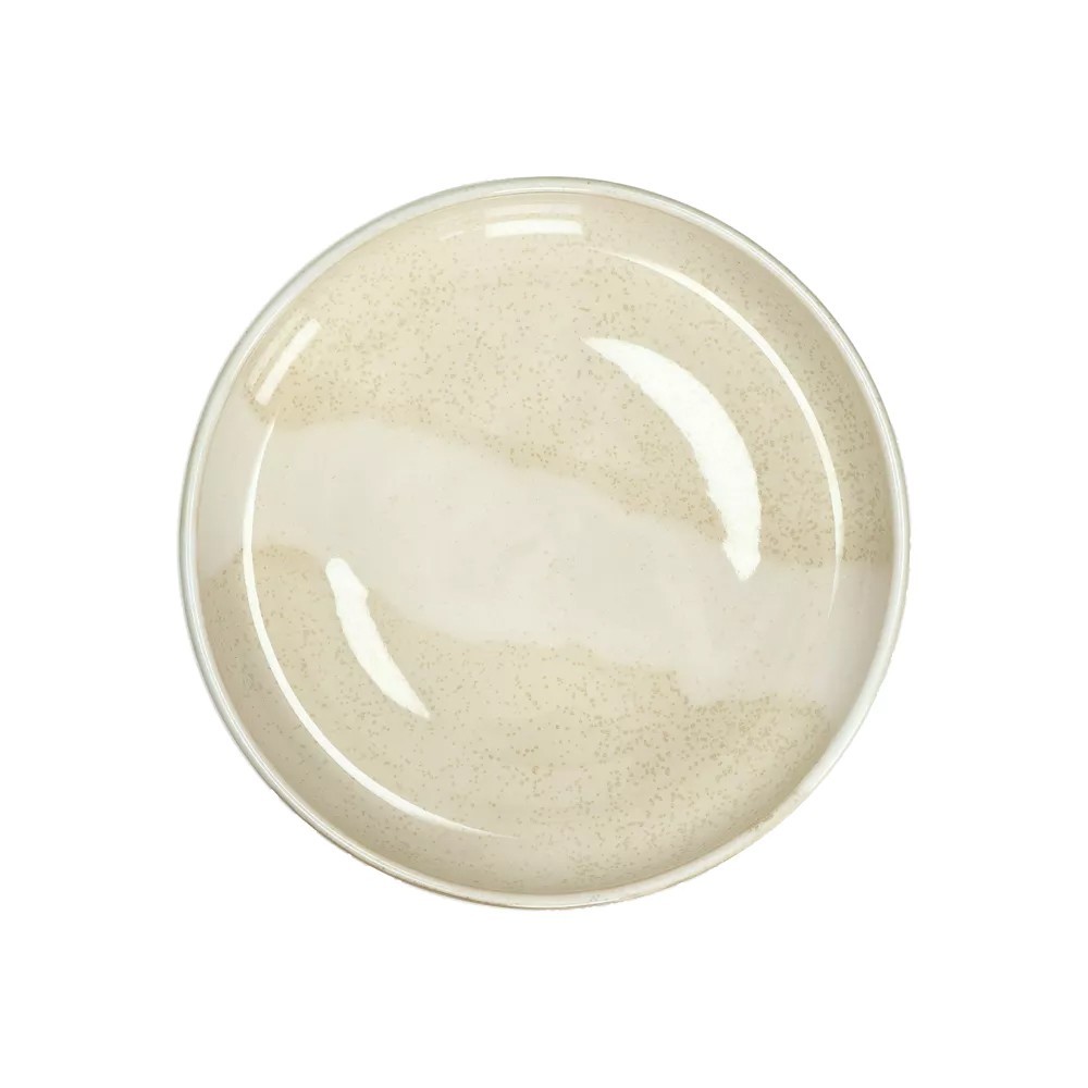 Cette vaisselle en porcelaine Nougat se compose de 8 bols et assiettes à bords arrondis et surélevés. Elle est confectionnée grâce à deux types d’émaux réactifs. Les deux émaux sont appliqués manuellement au pinceau.