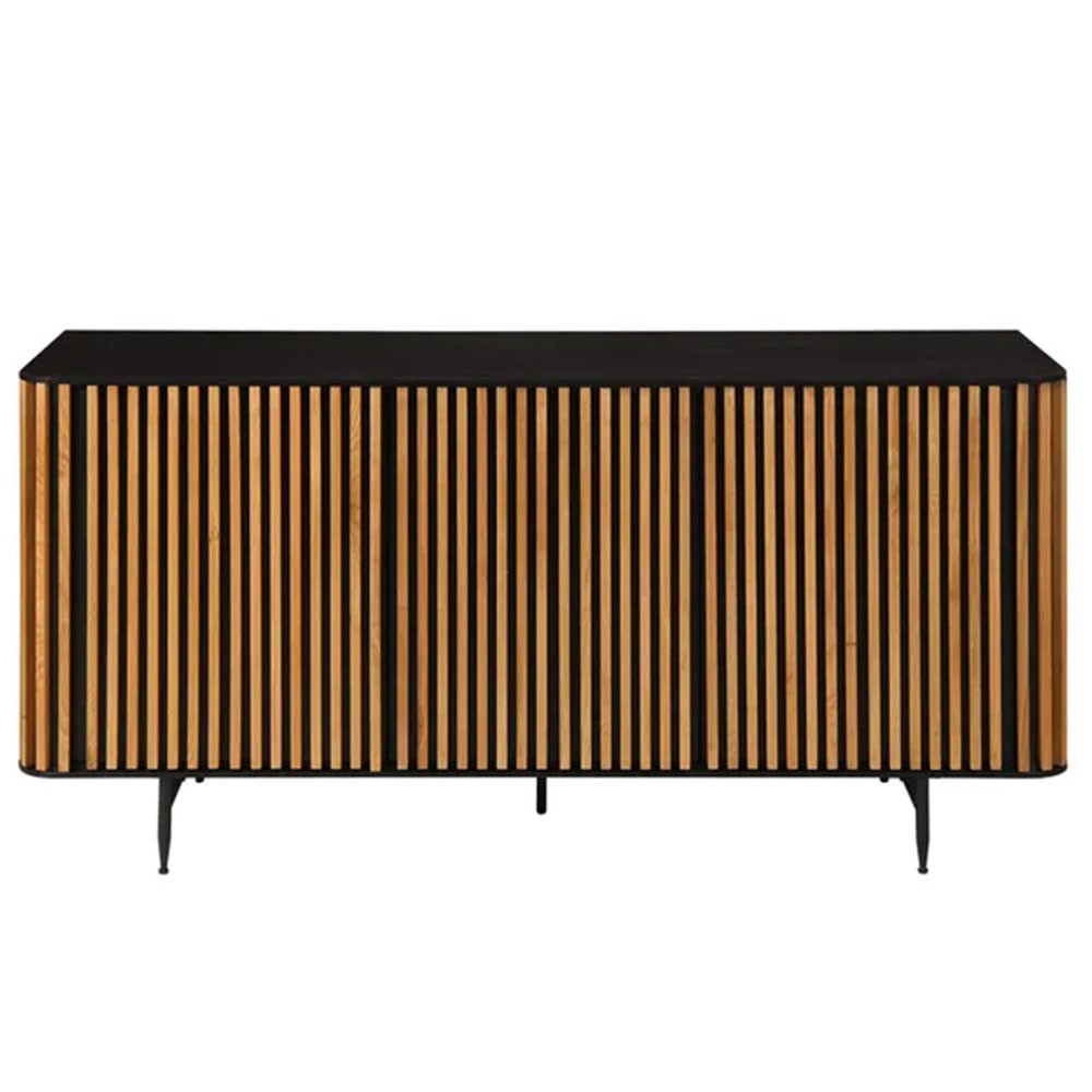 Le meuble bas 3 portes Lirona séduit par son design élégant et ses lignes en bois très tendance, apportant une touche de modernité naturelle et sophistiquée à votre intérieur tout en offrant un espace de rangement pratique.