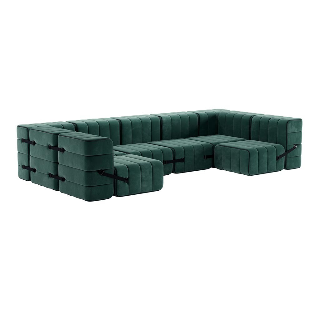 Le set de 15 modules Curt peut se suffir à lui-même et devenir un petit fauteuil asymétrique, un banc, une chaise longue ou des petits tabourets individuels. Quelques modules individuels suffisent pour se transformer en un système de canapé extrêmement flexible et modulaire et cela de manière très simple: Le set de 15 modules Curt est composé de sangles réglables qui permettent de créer à l'infini.