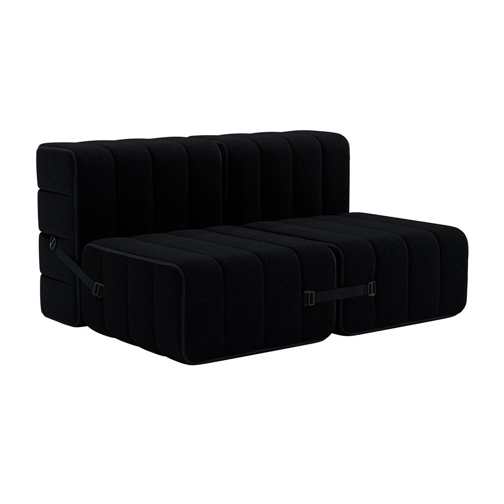 Le set de 4 modules Curt peut se suffir à lui-même et devenir un petit fauteuil asymétrique, un banc, une chaise longue ou quatre petits tabourets individuels. Quelques modules individuels suffisent pour se transformer en un système de canapé extrêmement flexible et modulaire et cela de manière très simple: Le set de 4 modules Curt est composé de sangles réglables qui permettent de créer à l'infini.