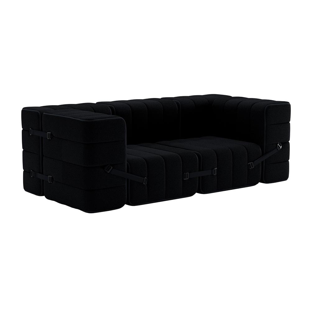Le set de 7 modules Curt peut se suffir à lui-même et devenir un petit fauteuil asymétrique, un banc, une chaise longue ou des petits tabourets individuels. Quelques modules individuels suffisent pour se transformer en un système de canapé extrêmement flexible et modulaire et cela de manière très simple: Le set de 7 modules Curt est composé de sangles réglables qui permettent de créer à l'infini.