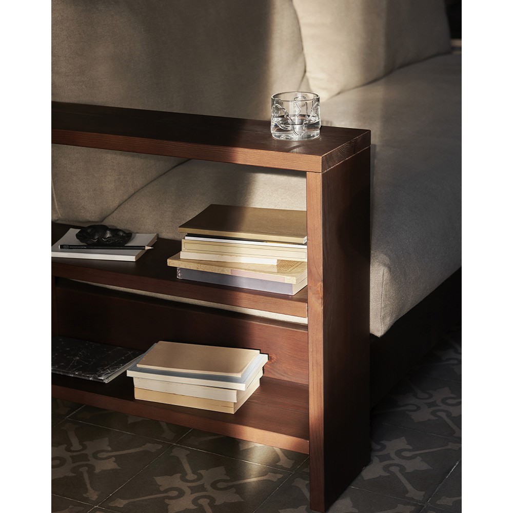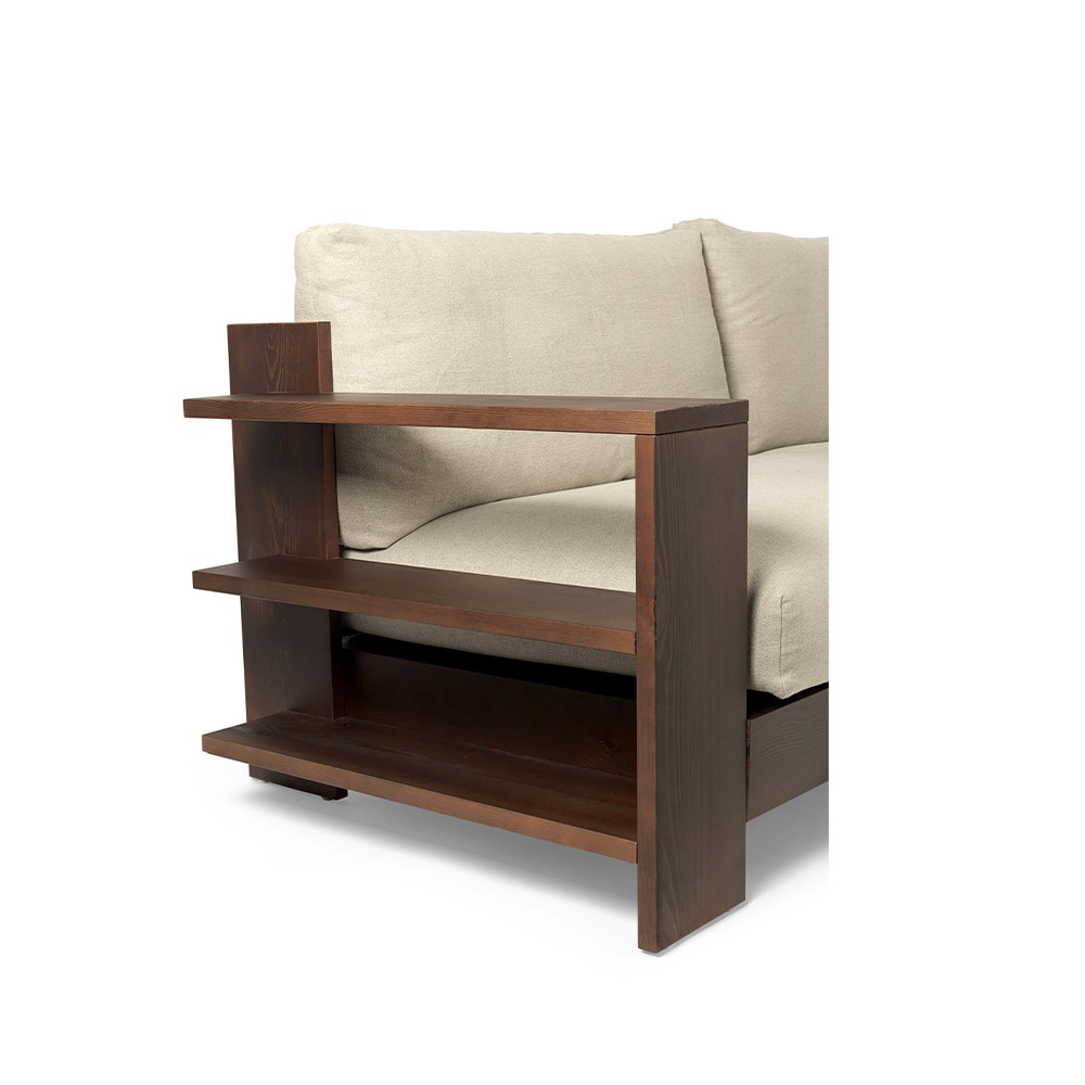 Découvrez ce magnifique canapé Edre de chez Ferm Living fabriqué à partir de pin massif, teinté et huilé certifié FSC ™. Un canapé très confortable avec de larges accoudoirs inspiration brutaliste qui peuvent également servir d'étagères où vous pourrez y placer vos livres ou vos objets préférés.