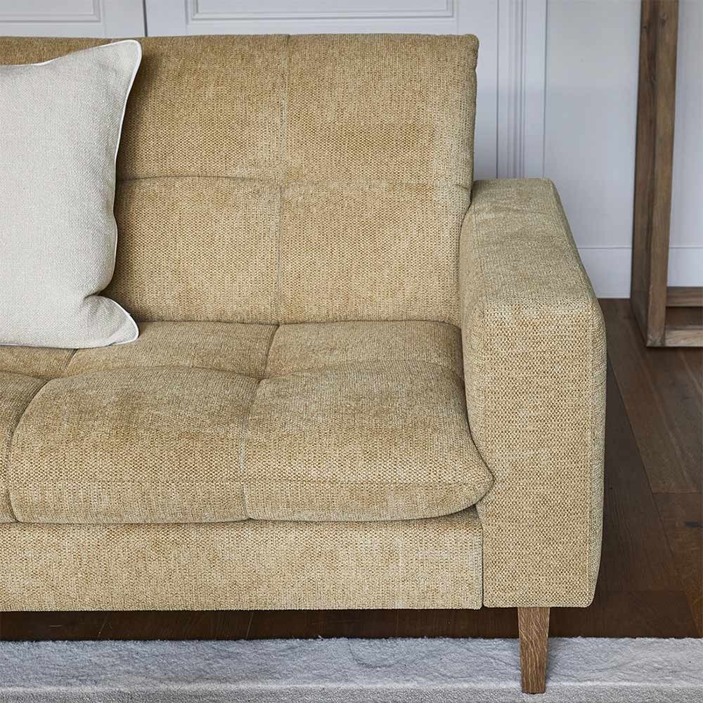 Découvrez le canapé Nelson 3,5 places, un exemple de raffinement dans la belle couleur Silky Brass. Ce canapé offre non seulement suffisamment d'espace pour tout le monde, mais rayonne également d'élégance dans n'importe quel intérieur. Avec ses sièges confortables, le Nelson vous invite à vous détendre et à profiter de moments conviviaux avec style