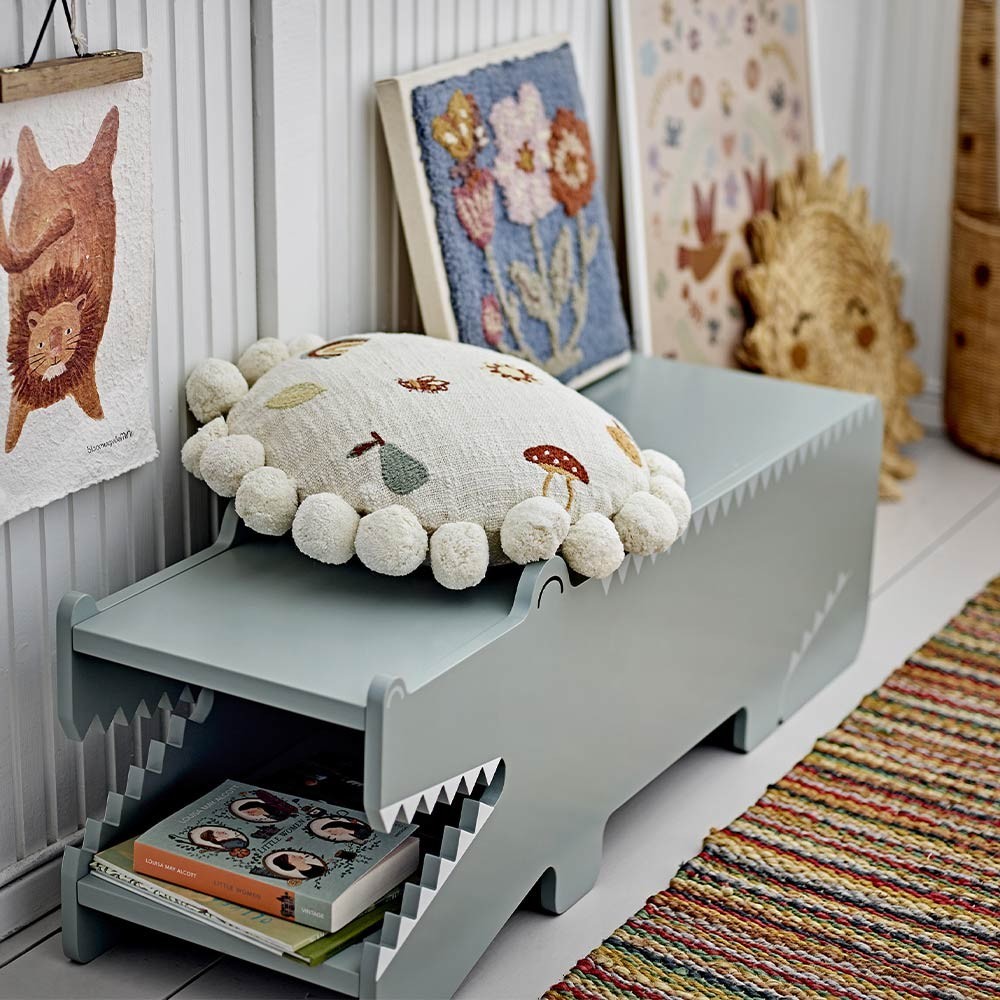 Le banc Arnie de Bloomingville MINI est l'ajout parfait à toute chambre d'enfant! Façonné comme un mignon alligator dans une belle couleur verte poudrée, ce banc sert à la fois de coin assis amusant et de beau meuble. Avec des ouvertures des deux côtés, il est facile pour les enfants de ranger leurs livres, jouets ou ours en peluche préférés, qui peuvent être soigneusement rangés à l'intérieur du banc.