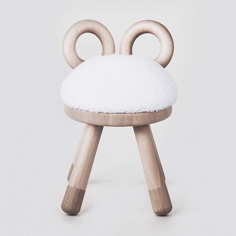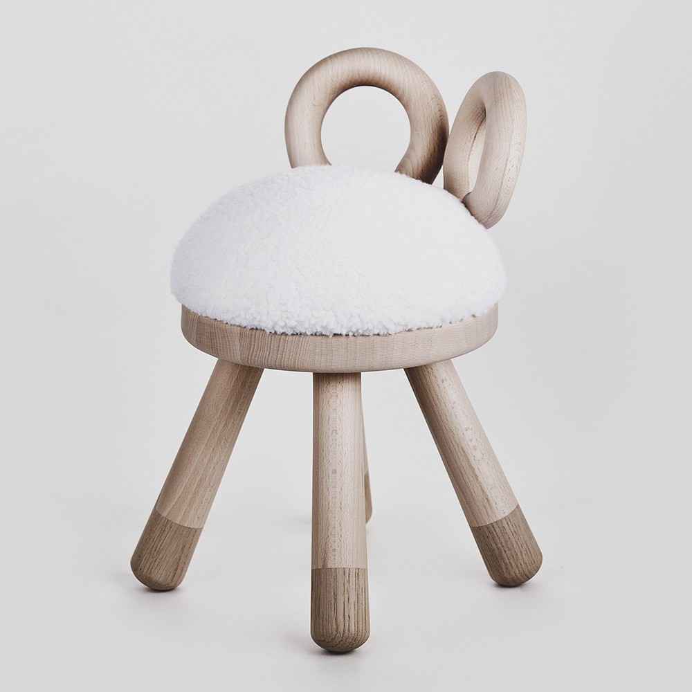 La chaise Sheep est une pièce ludique pour enfant, au design sculptural accueillant. Il est fabriqué à partir de bois de hêtre européen et de chêne, et présente un siège moelleux en fausse peau de mouton.