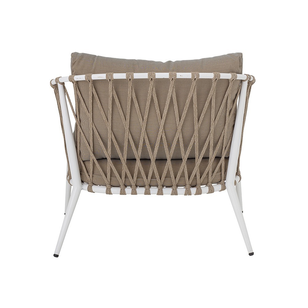 La chaise longue Cia est un élégant meuble avec ses cordes magnifiquement tissées autour du cadre en fer blanc pour soutenir les coussins moelleux. La chaise vous offre à la fois confort, détente et élégance. Le cadre en fer est résistant au gel et les cordes sont hydrofuges, vous n'avez donc besoin de rentrer le coussin que lorsqu'il pleut.