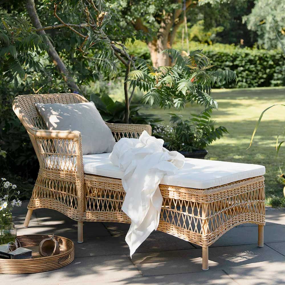 Découvrez la chaise longue Olivia, pièce de la collection Georgia Garden par Sika Design. Dans cette collection, la marque rassemble des pièces dont le design s’inspire du style colonial anglais et du style traditionnel scandinave. Surplombée par un joli coussin, cette chaise lounge confortable sera idéale pour profiter du soleil. Vous aller adorez son design enveloppant, parfait pour un instant de détente. Fabriquée à la main, cette chaise longue se compose d’une structure en aluminium et de fibre synthétique. Cela lui garantit une résistance aux intempéries et la rend d’autant plus pratique.