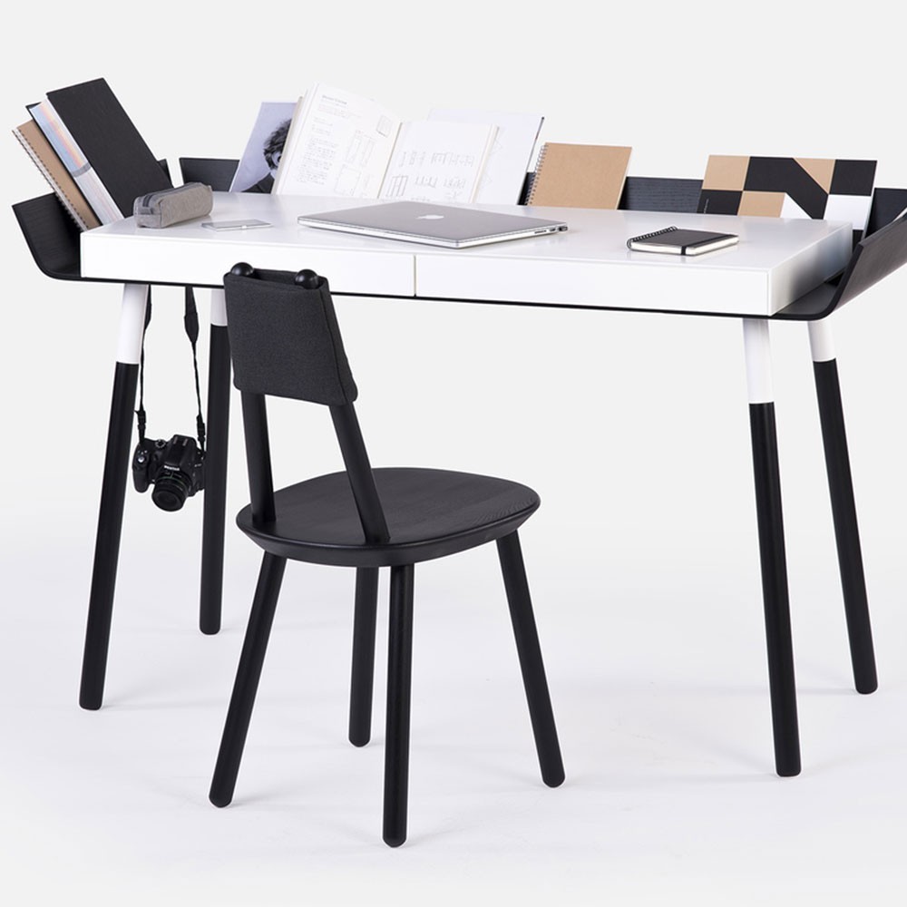 La chaise Naïve noir a été conçue par EMKO. Son design est simple, presque enfantin, mais la promesse est bien présente. Cette chaise, d'une précision parfaite, a été pensée pour offrir une excellente ergonomie dans une position assise très confortable, notamment grâce au dossier en mousse. L'essayer, c'est l'adopter !