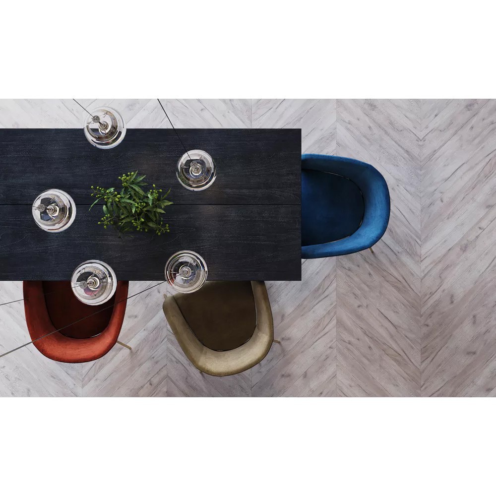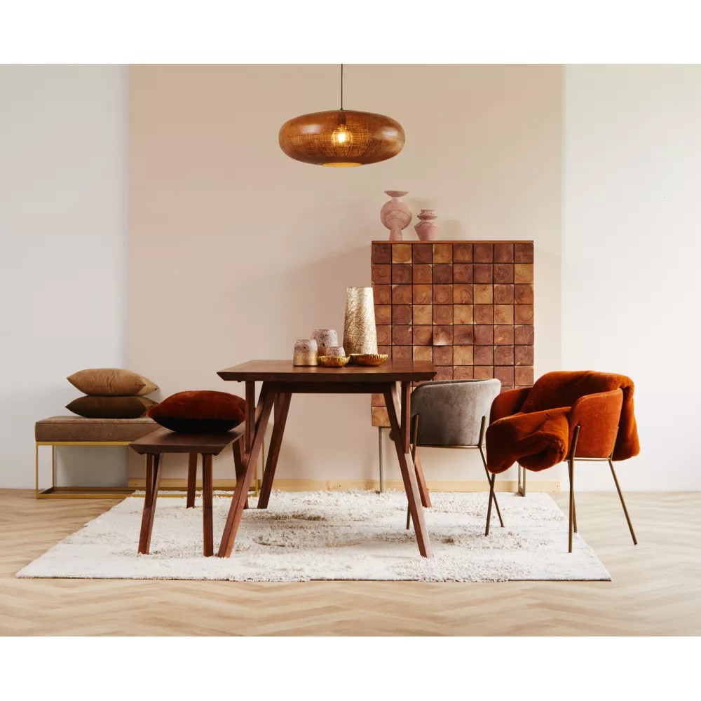 Ces chaises originales Polka en velours sur pieds dorés légèrement inclinés à l’arrière donnent à chaque intérieur un look ludique mais sophistiqué.