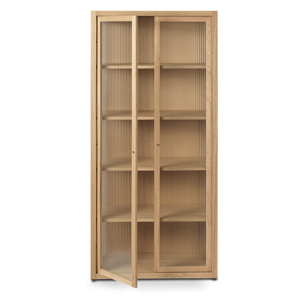 Rehaussez votre espace avec la vitrine Reed, fabriquée en chêne massif et placage de chêne certifiés FSC™. Combinant un savoir-faire méticuleux avec un design intemporel, cette pièce sophistiquée tire son nom des portes en verre cannelé qui ajoutent de la texture tout en masquant subtilement son contenu. Les poignées en laiton massif rehaussent son élégance tout en complétant la chaleur naturelle du chêne. La vitrine Reed offre un grand espace pour les livres, les ornements et les objets précieux et s'adapte parfaitement à divers styles d'intérieur, ce qui la rend adaptée aux cuisines, aux salles à manger et aux salons.