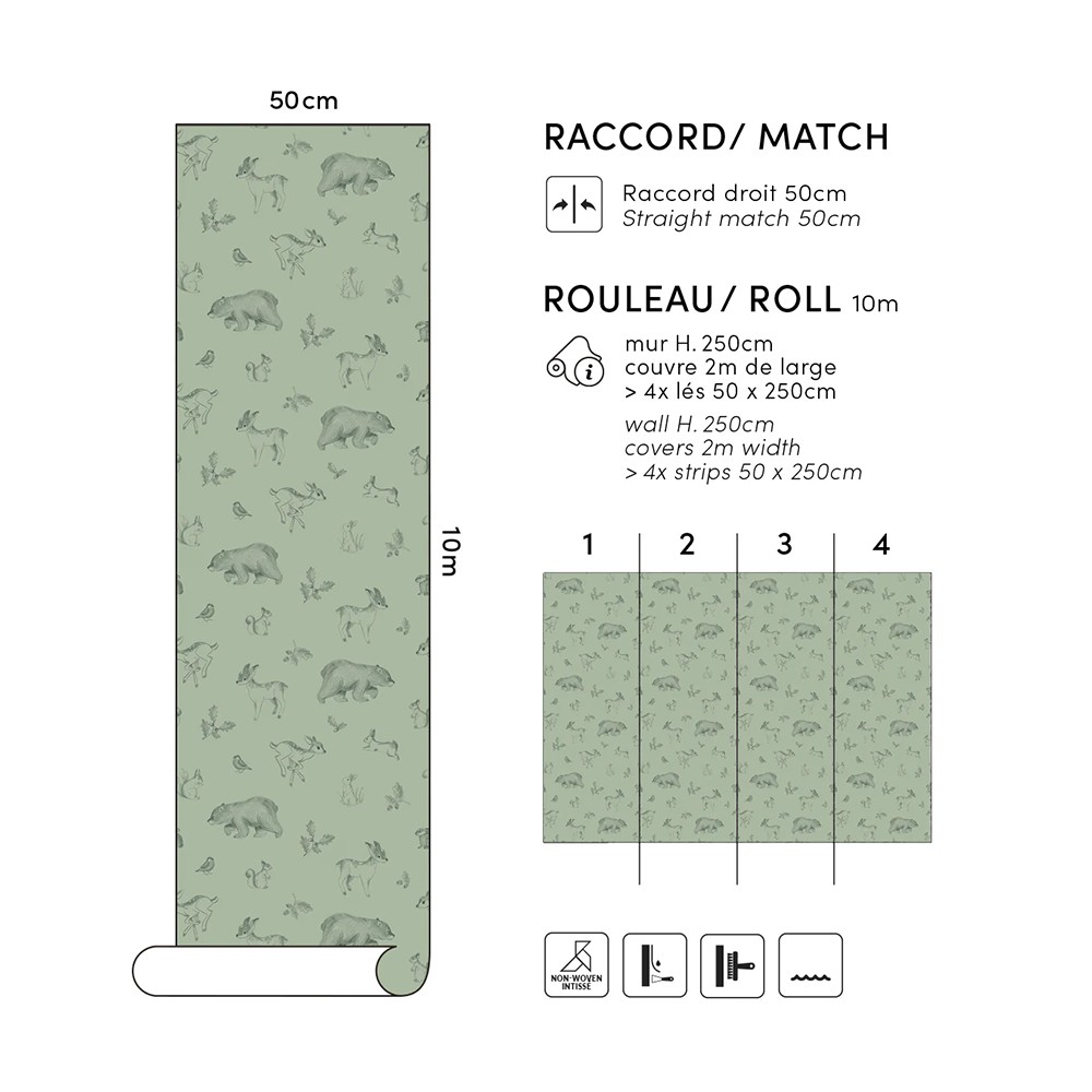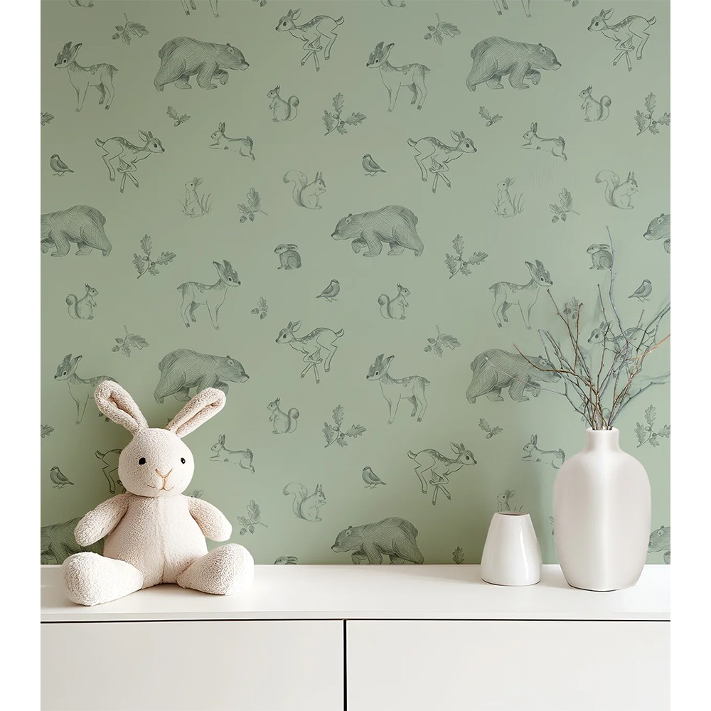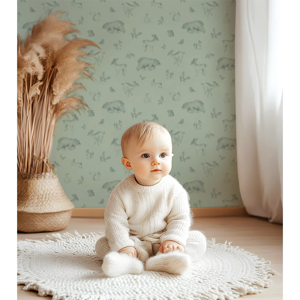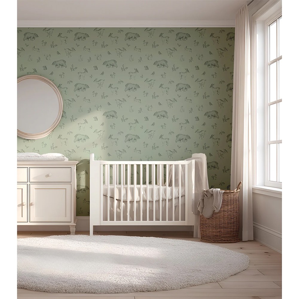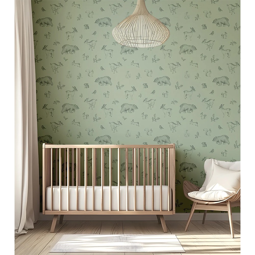 Plongez dans un univers poétique et rassurant avec notre papier peint animaux forêt vert sauge. Parfait pour une chambre d’enfant ou de bébé, ce décor mural au ton doux invite à la rêverie.
