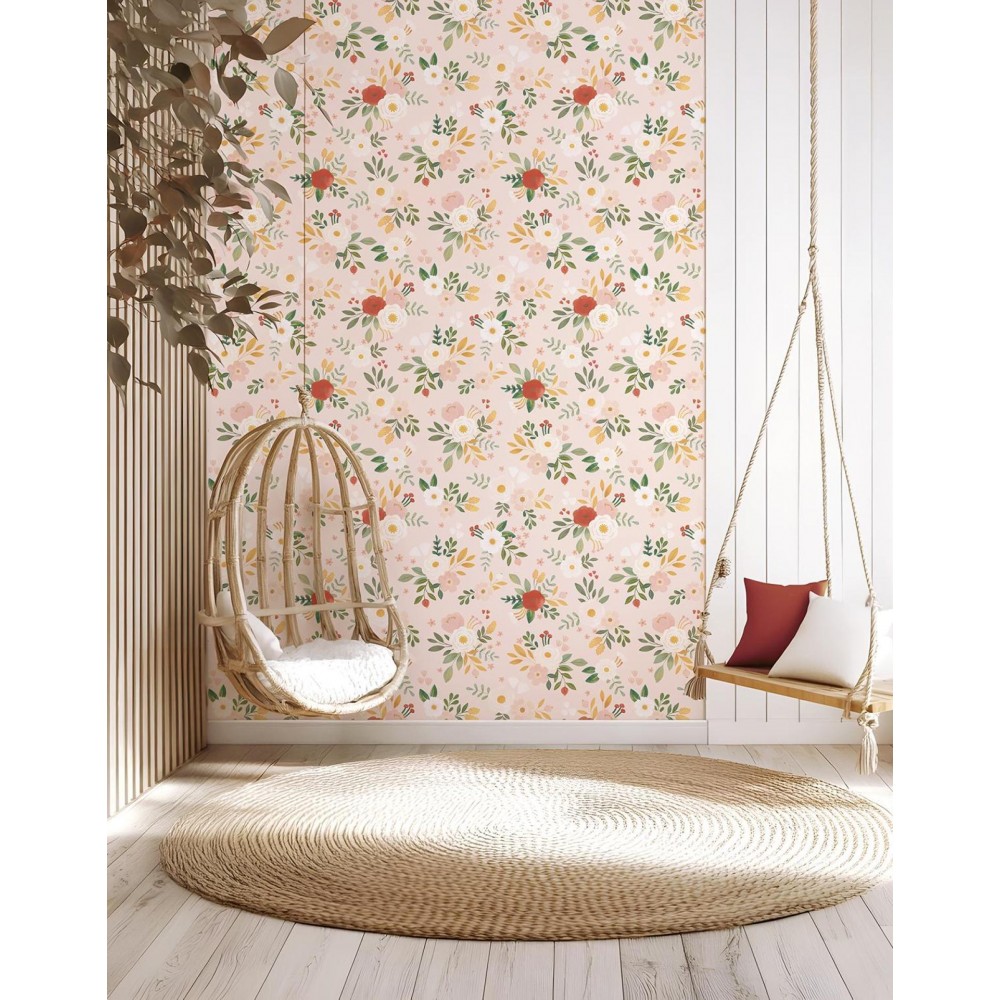 Apportant une ambiance douce et florale, ce papier peint fleuri transformera la chambre de votre enfant en un cocon délicat et poétique. Décliné en deux nuances de fond rose - pâle ou soutenu - est fabriqué en France. Il allie style et qualité pour une décoration murale à la fois tendre et durable.