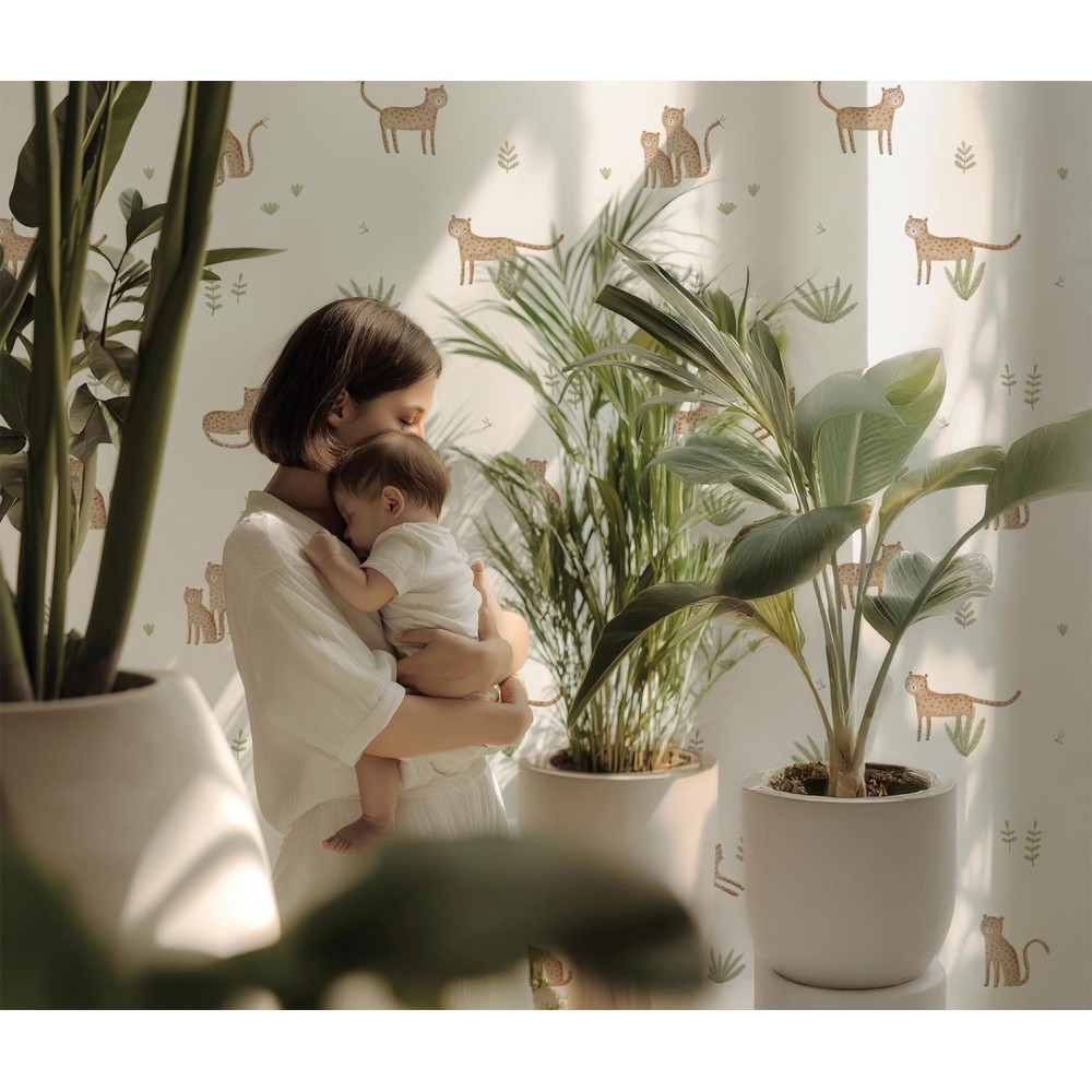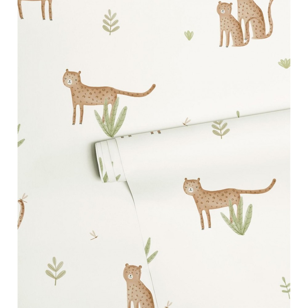 Papier peint léopard et feuillage, horizon sauvage - SAMBURU par Lilipinso