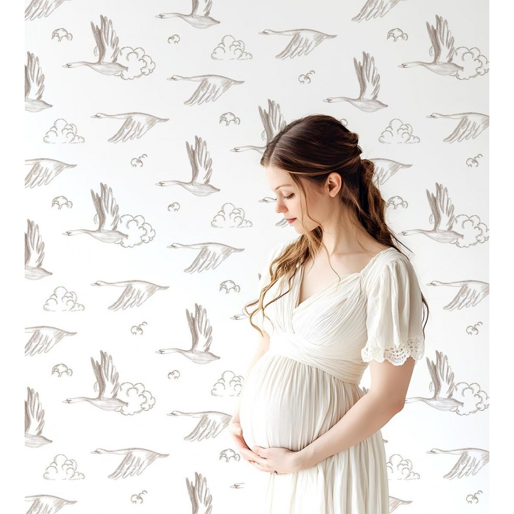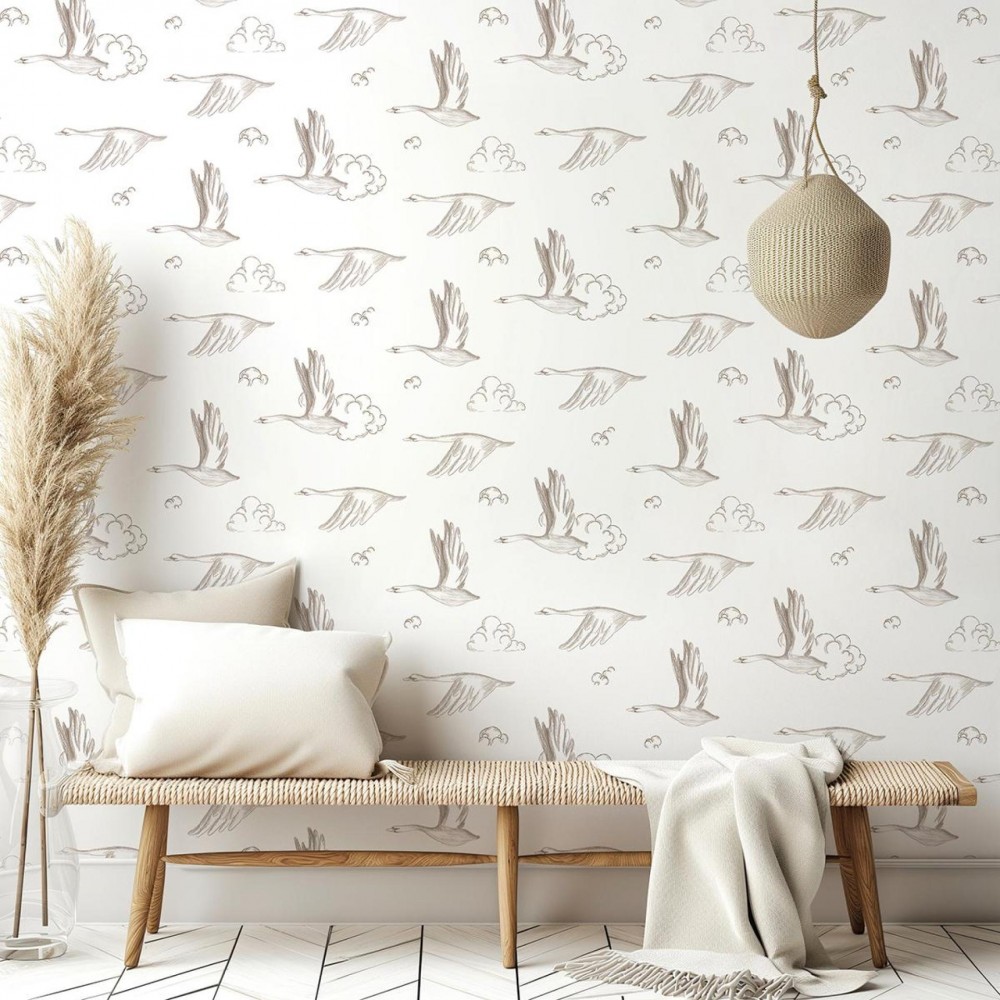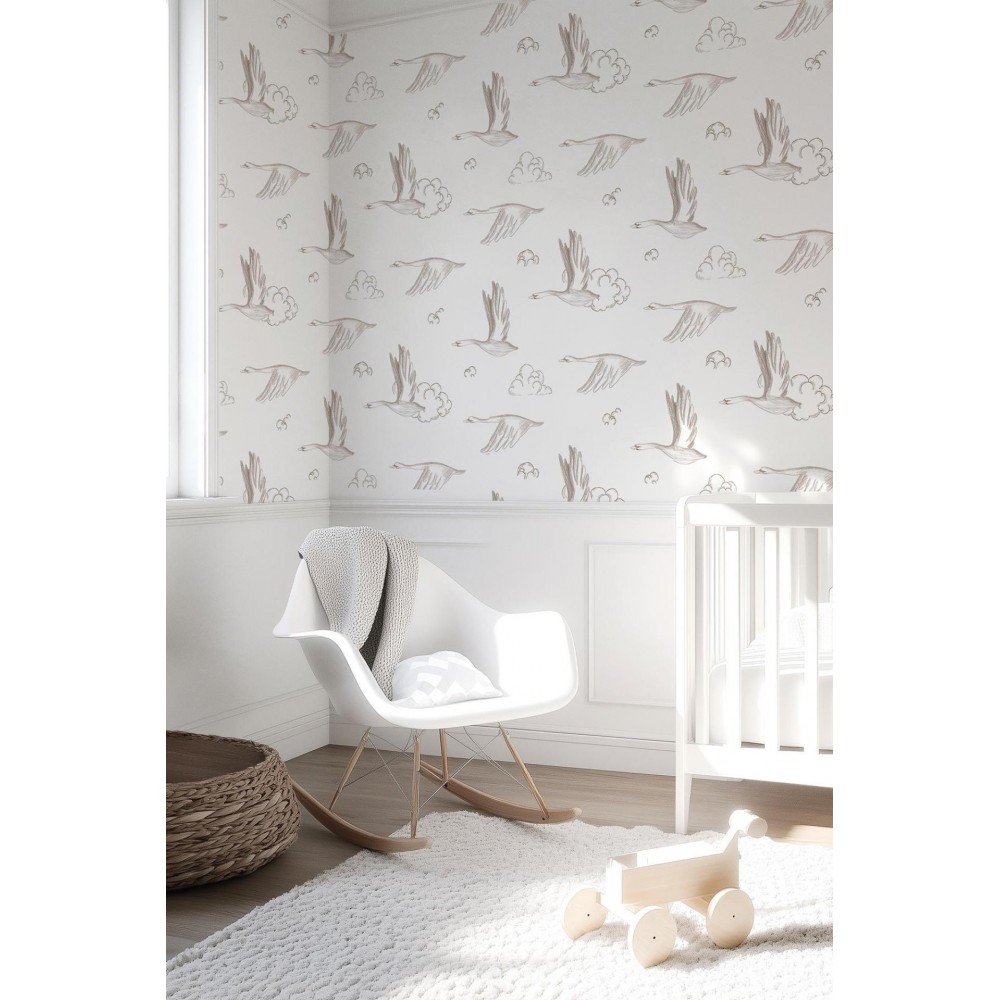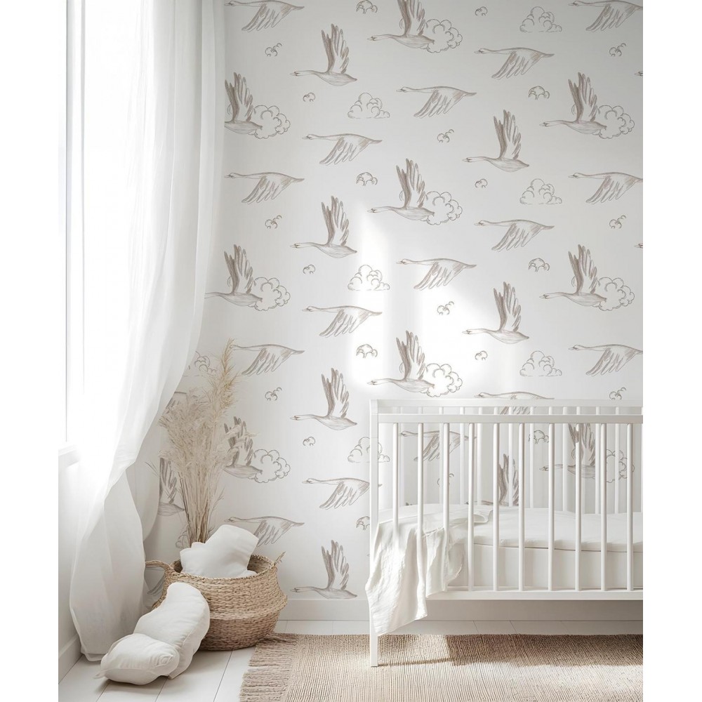 Apportez une ambiance douce et naturelle à la chambre de votre enfant avec notre papier peint intissé oies. Ce modèle délicat aux motifs d'oie crayonnés dans des tons sépia chaleureux est facile à poser et s’adapte parfaitement à un univers enfantin apaisant et élégant.