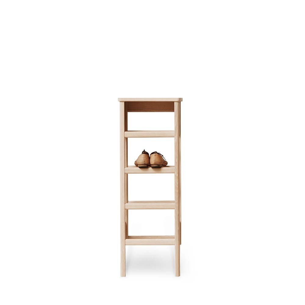 L'étagère à chaussures A Line est une petite étagère à chaussures et une console au design harmonieux qui permet d'utiliser au mieux l'espace étroit des couloirs, des buanderies ou des halls d'entrée fonctionnels. Il est fabriqué à partir de chêne d'origine durable de la plus haute qualité et ses contours sont soigneusement arrondis, conformément à la tradition artisanale.